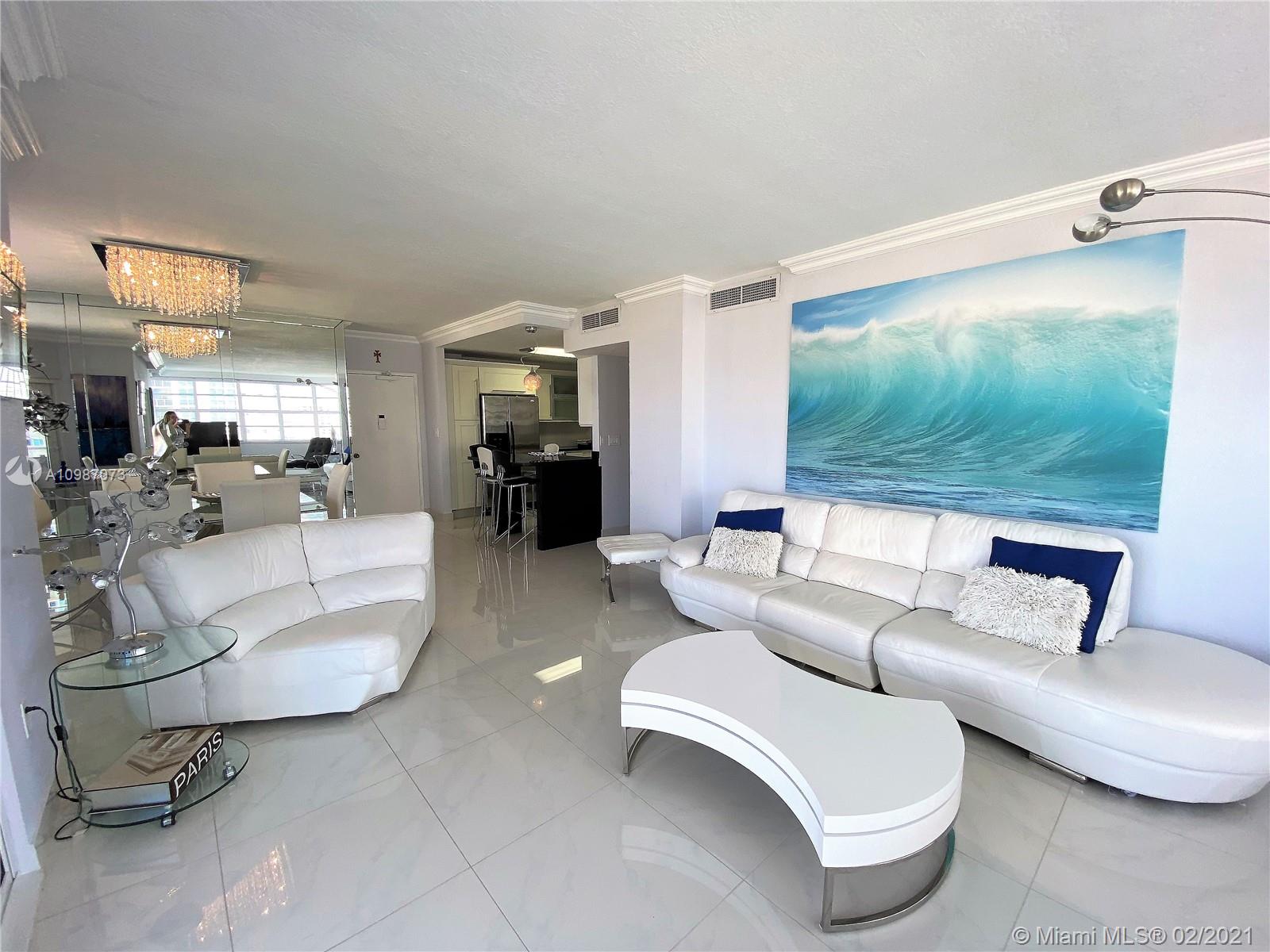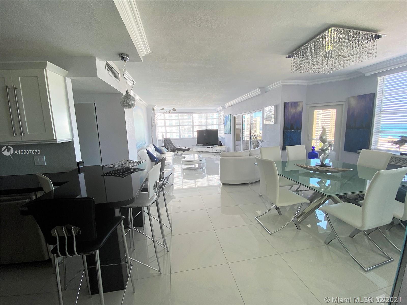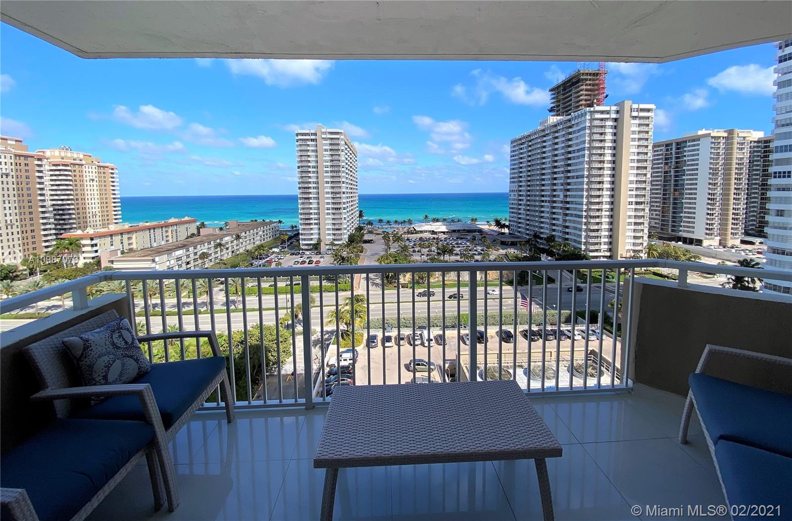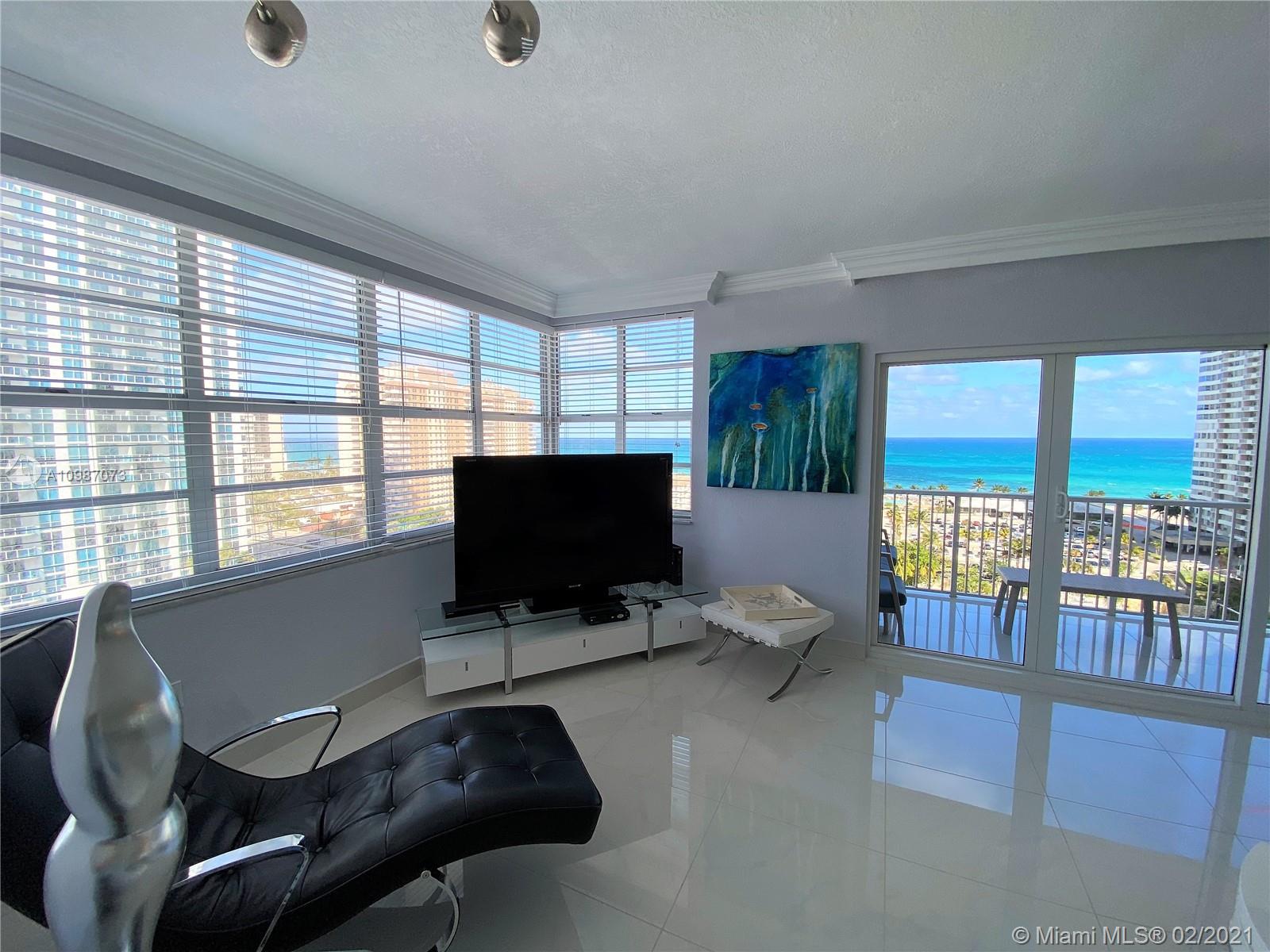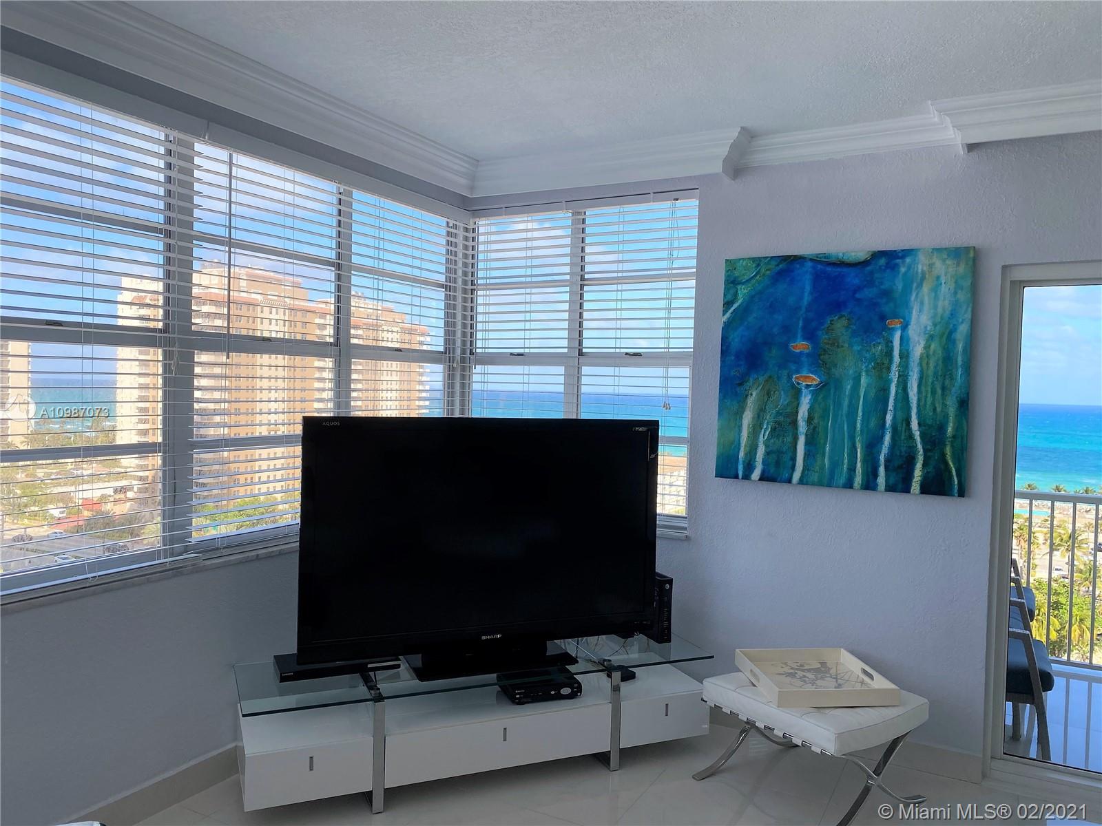 Corner unit on the ocean with spectacular views of the city, intercoastal and ocean from every room. Completely remodeled, top of the line. Resort living with 2 heated pools, 2 gyms, 3 restaurants, tennis, basketball courts, shuffle board, putting green and much more. Maintenance fee includes A/C, internet, basic cable, and all amenities. Furniture also for sale. Minutes away from Hollywood beach, Gulf Stream, Aventura Mall and major highways. Must see.