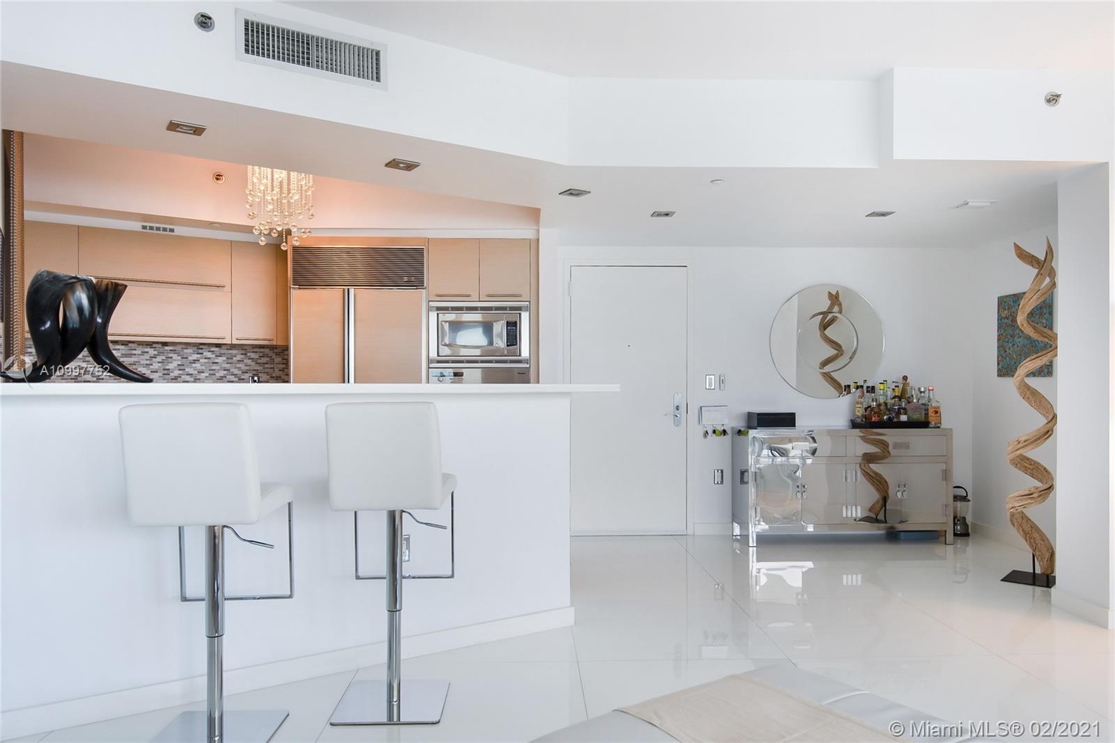 One of the few and most-desired, direct bay-front apartments at the Murano Grande in South Beach. This 2/2 floorplan is impeccably designed and fully renovated with bright, white surfaces, white "glass" flooring, upgraded bathrooms, closets and more. Direct water views from every room. It has an open kitchen plan with Subzero and Miele appliances, a sit up bar, living and dining area and more. The expansive 336 sqft (31.2 m²) terrace offers significant additional living space and stunning views of the Miami Beach Marina, Fisher Island, Downtown Miami and Biscayne Bay. Murano Grande provides superfast Internet, HD television and three TIVO units as part of your maintenance. Amenities include an onsite restaurant, tennis court, an extensive gym and world class pool with towel service.