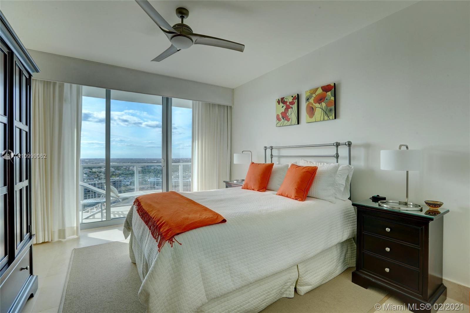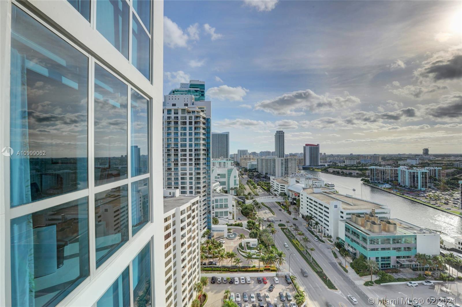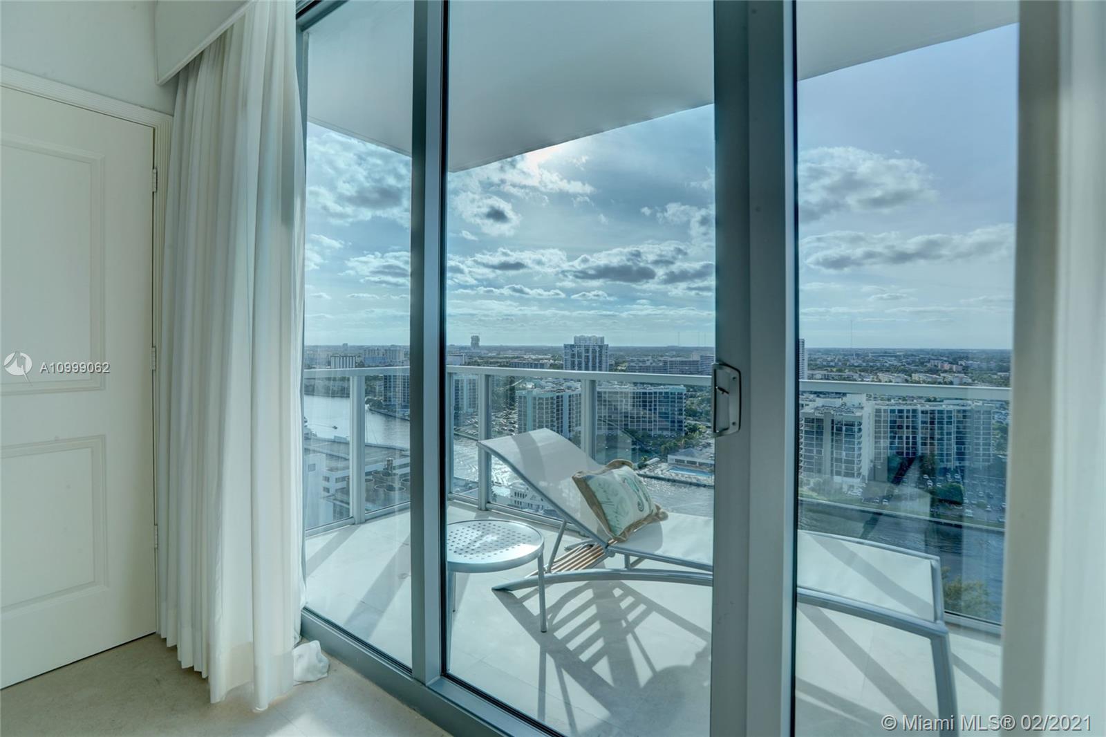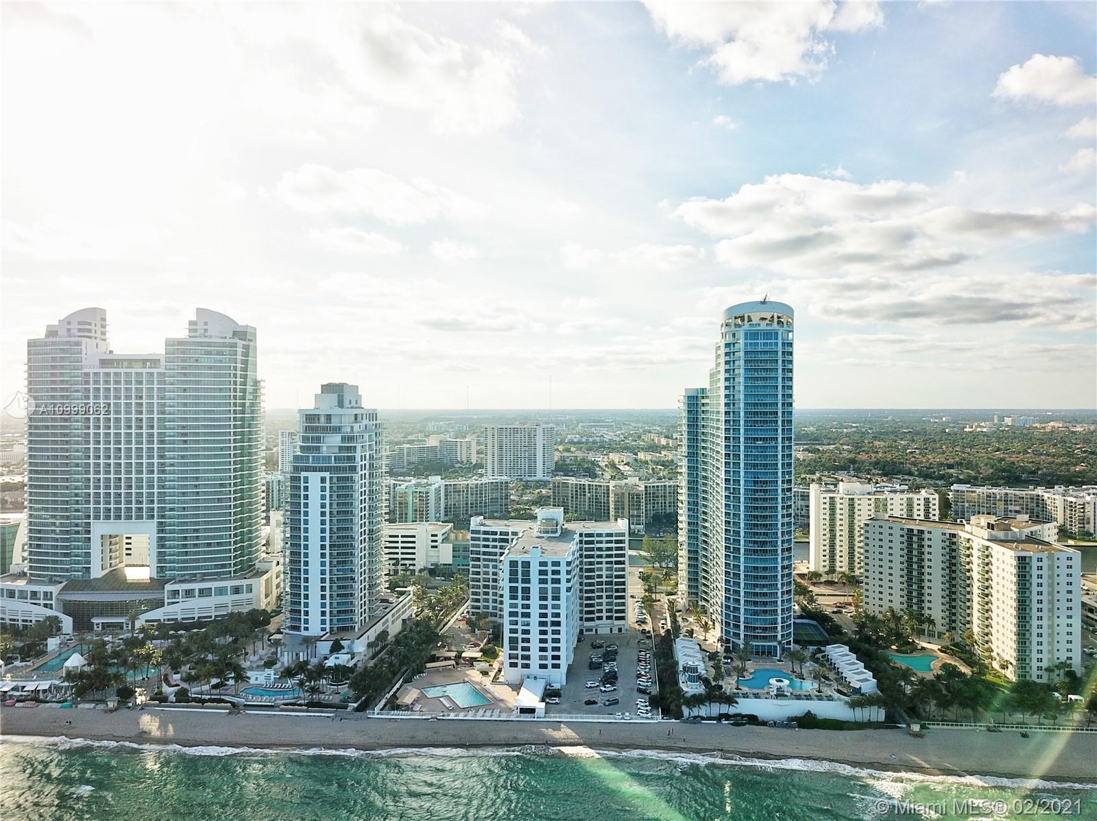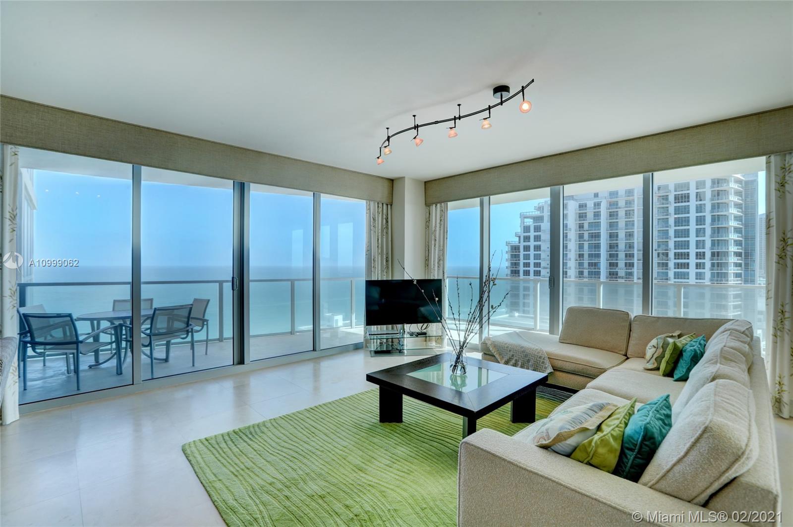 21st floor panoramic Ocean & Intracoastal Views as you step off the private Elevator to this spacious 3 bedroom 3 bathroom condo in the sky with Floor to Ceiling Impact Windows and balconies facing the Ocean & City Lights! This impeccably maintained & designer finished condo has Stone Floors, granite counters, Snaidero cabinetry, Sub Zero Miele & Thermador appliances, roller shades, custom window treatments & lighting, designer fixtures & built-in closets. Third bedroom open to living room being used as an office. Two parking spaces. 5-star amenities: 2-story fitness spa, ocean side pool, hot tub, towel & chair service, tennis, media & party rooms, concierge, business center, & the sand of Hollywood Beach at the ground floor! Close to Gulfstream, Aventura Mall, Restaurants & the Airports