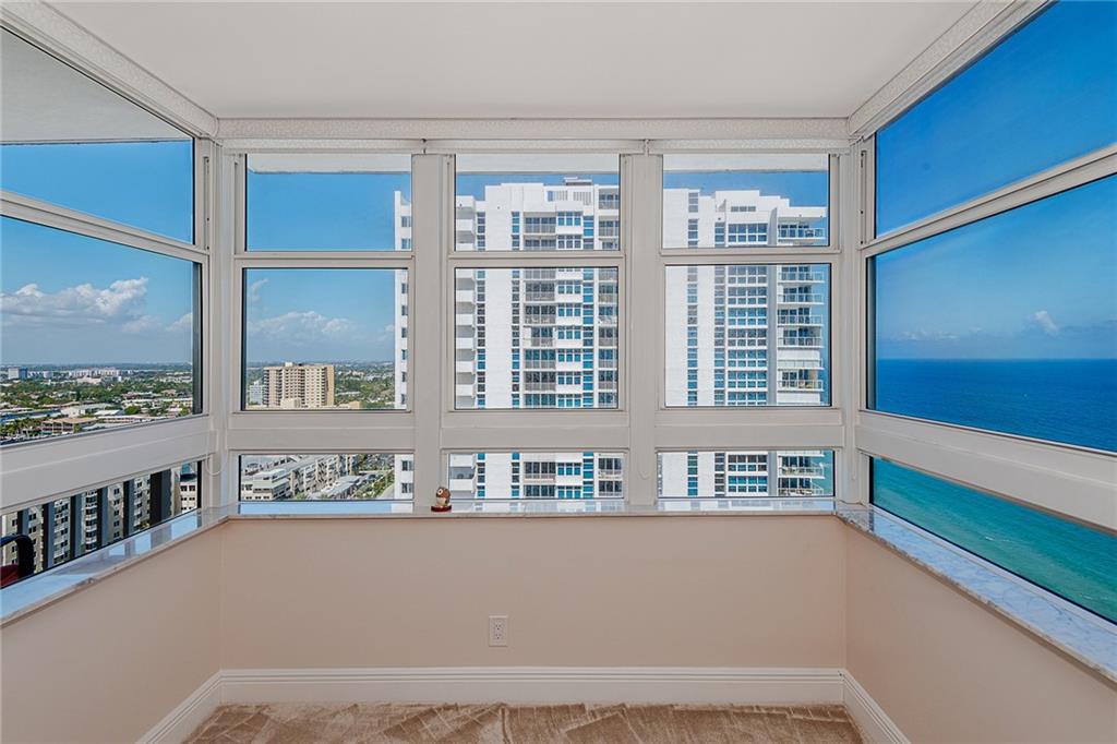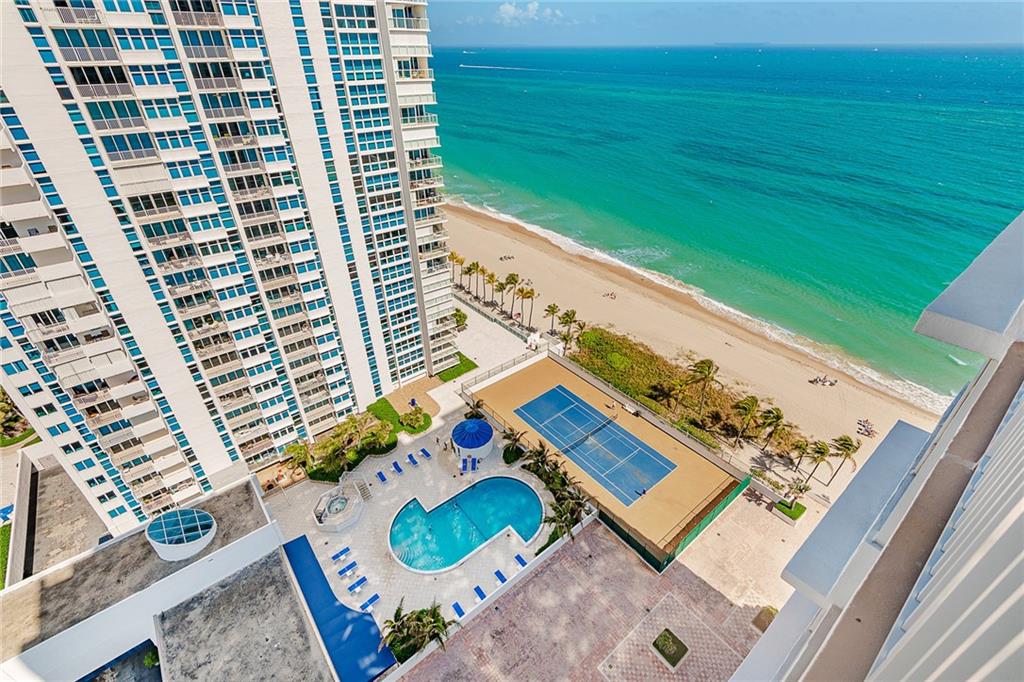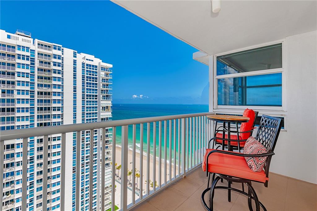 BEAUTIFUL 2/2 LUXURY OCEANFRONT CONDO, SMACK ON THE SAND. GEORGEOUS OCEAN & INTRACOASTAL VIEWS FROM BOTH BEDROOMS & BALCONY, WHICH IS PROTECTED FOM THE WIND & OFFERS PLENTY OF SHADE. TOTALLY RENOVATED & REMODELED AT A COST OF OVER $110k. FABULOUS NEW KITCHEN WITH MARBLE COUNTERS & HIGH END SAMSUNG APPLIANCES. CLOSETS GALORE. LARGE MASTER BR HAS SITTING AREA NOOK. GUEST BEDROOM HAS BUILT IN MURPHY BED & CUSTOM WORKSPACE. ALL IMPACT WINDOWS & SLIDING DOORS. LOW MONTHLY HOA FEE INCLUDES INTERNET & CABLE W/ HBO. BUILDING IS WELL MANAGED AND MAINTAINED. THIS IS RESORT STYLE LIVING. ENTERTAIN IN THE ROOFTOP SKY LOUNGE W/ PANORAMIC VIEWS OF THE OCEAN AND BEACHES. 24 HOUR SECURITY, HEATED POOL & JACUZZI, TENNIS & PICKLEBALL COURT, SAUNA, GYM GAME ROOM & UPPER LEVEL GARAGE PARKING. COME SEE!