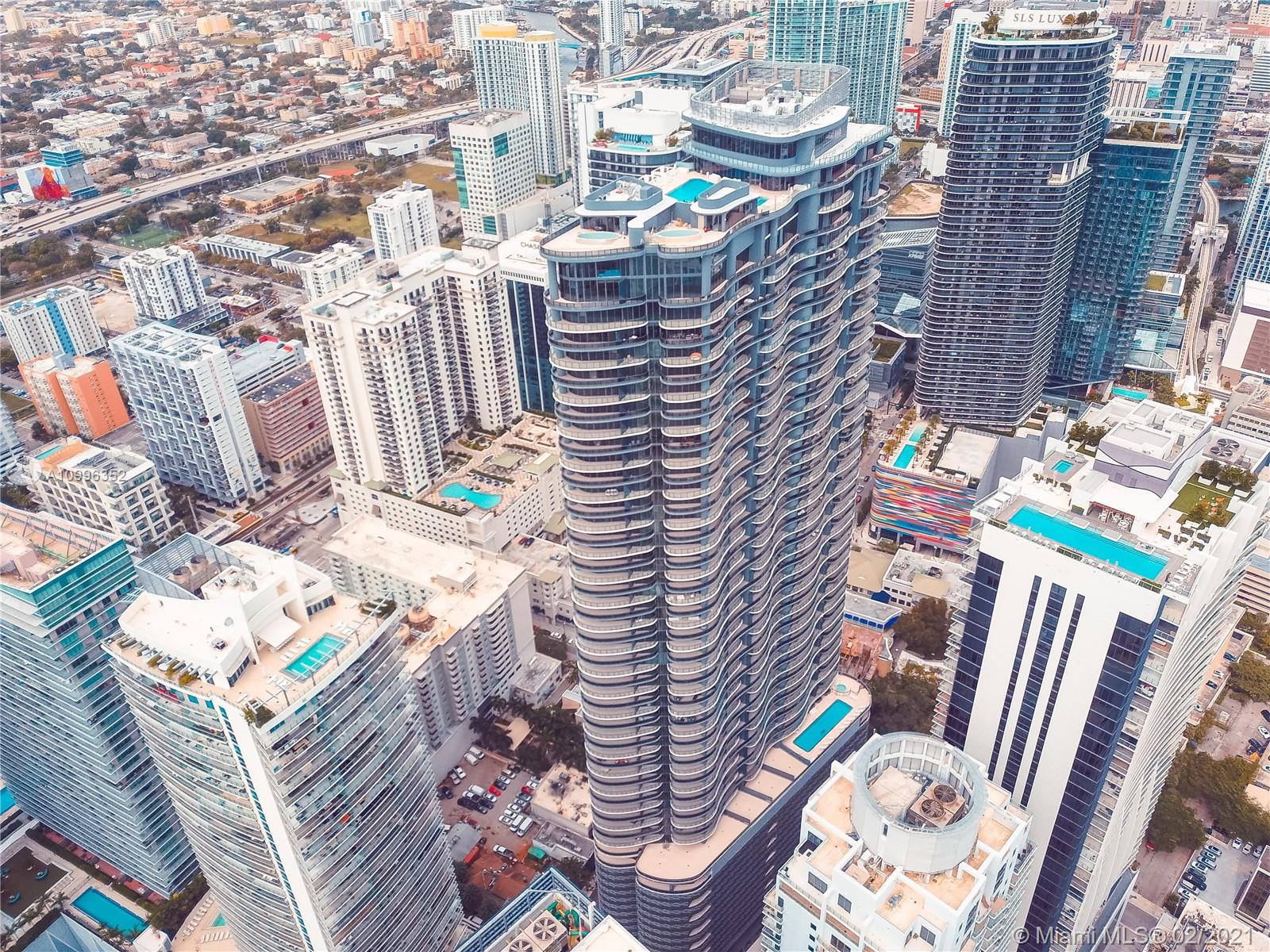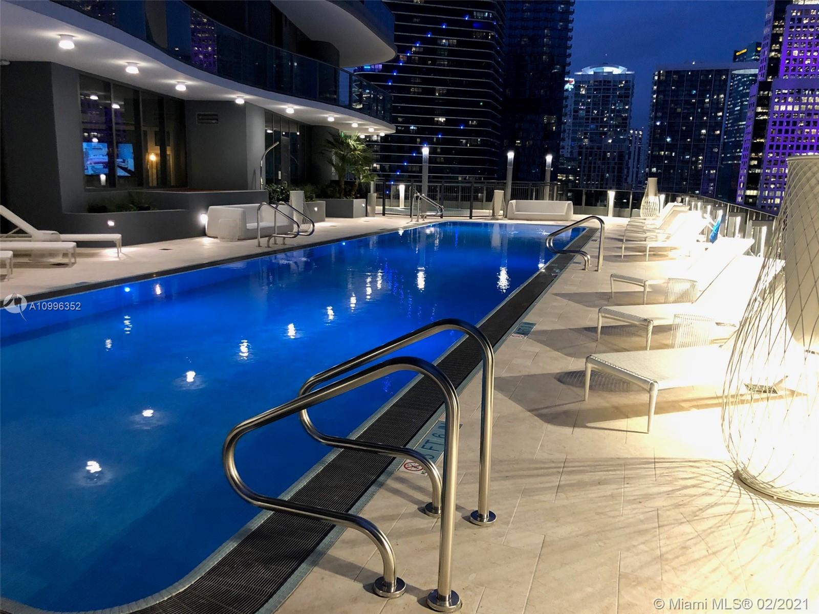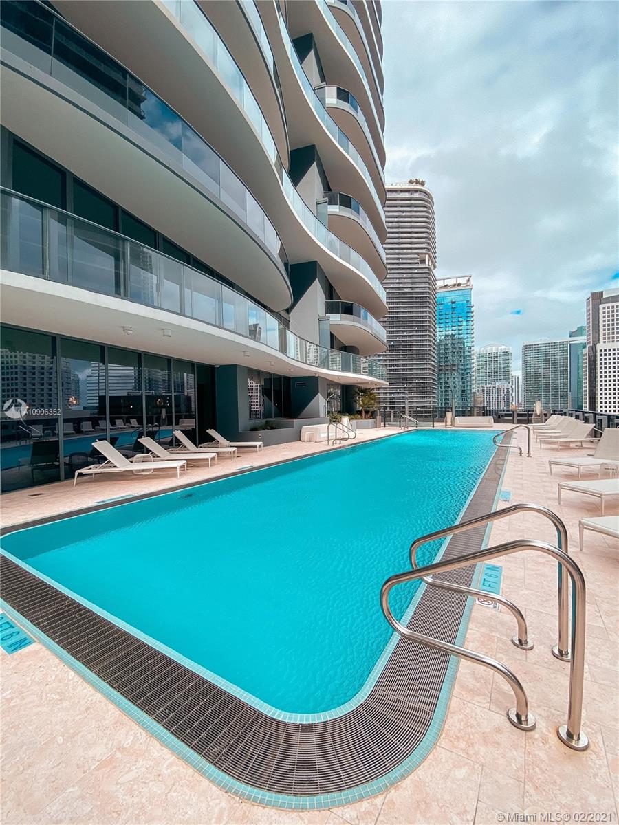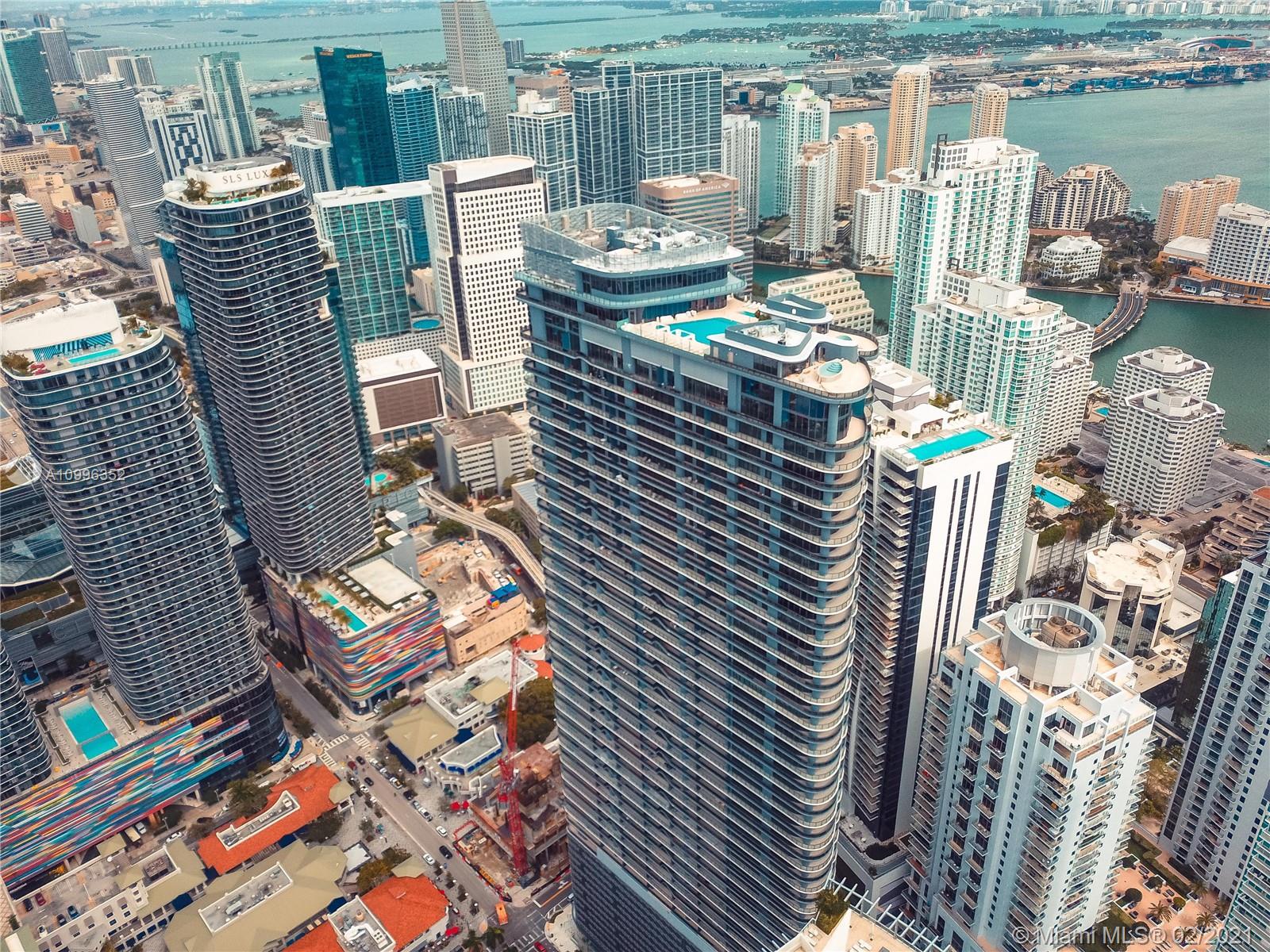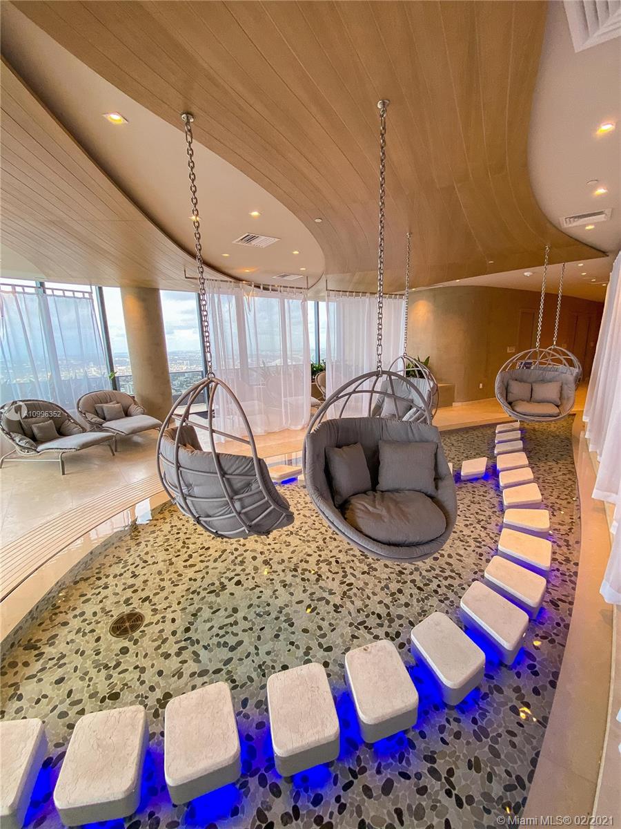 A luxury development by Ugo Colombo’s CMC Group; this gorgeous building is the ultimate address in town; This is an amazing 1 Bedroom plus Huge Den serves as a Second Bed w/2 full Baths. The kitchen features all Miele appliances & cooking island. Marble in bathrooms, separate tub & shower; Enjoy energy efficient impact resistant floor to ceiling windows and an enhanced insulation sound proofing between units; Enjoy stunning views of the Miami’s skyline. Amenities include the 64th floor rooftop pool with a spa, Steam, sauna, and locker facilities and 6,300-square-foot gym with a Pilates, yoga, aerobics studio, and a juice bar. The building also includes a lap pool and children’s pool on the 18th floor, a movie theater, billiards room, and electric car charging stations. Full time concierge