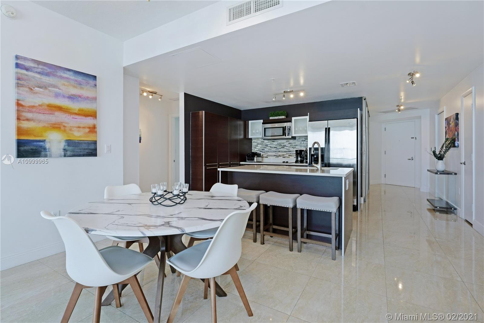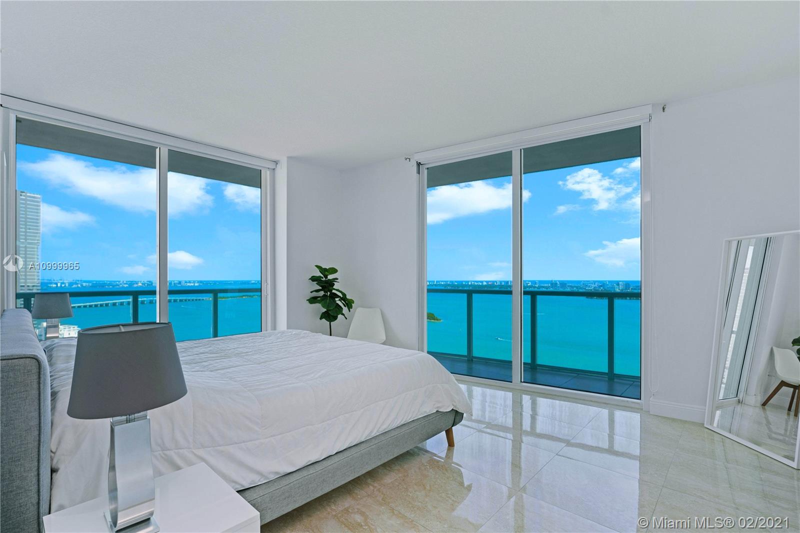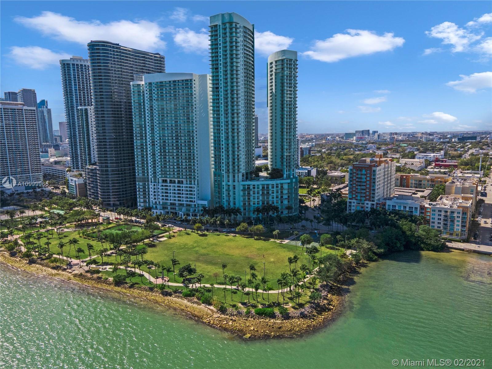 Experience a million-dollar view in this remodeled 2 bedroom + Den, with 2.5 bathrooms and 1,460 square feet of living. Spectacular sunset and sunrise views in this expansive and private wrap-around balcony with a 190-degree view. Direct unobstructed water views with an 8.5-acre public park fronting Biscayne Bay. High ceilings and tons of customized storage space and expanded closets. Upgraded marble porcelain tiles throughout with spacious bathrooms. Luxurious, quiet and private oasis in the middle of bustling Edgewater. Sale includes 1 covered parking space in a low floor #455 and use of valet service. The building is amenity rich and well managed. Central location, ideal building for any lifestyle.