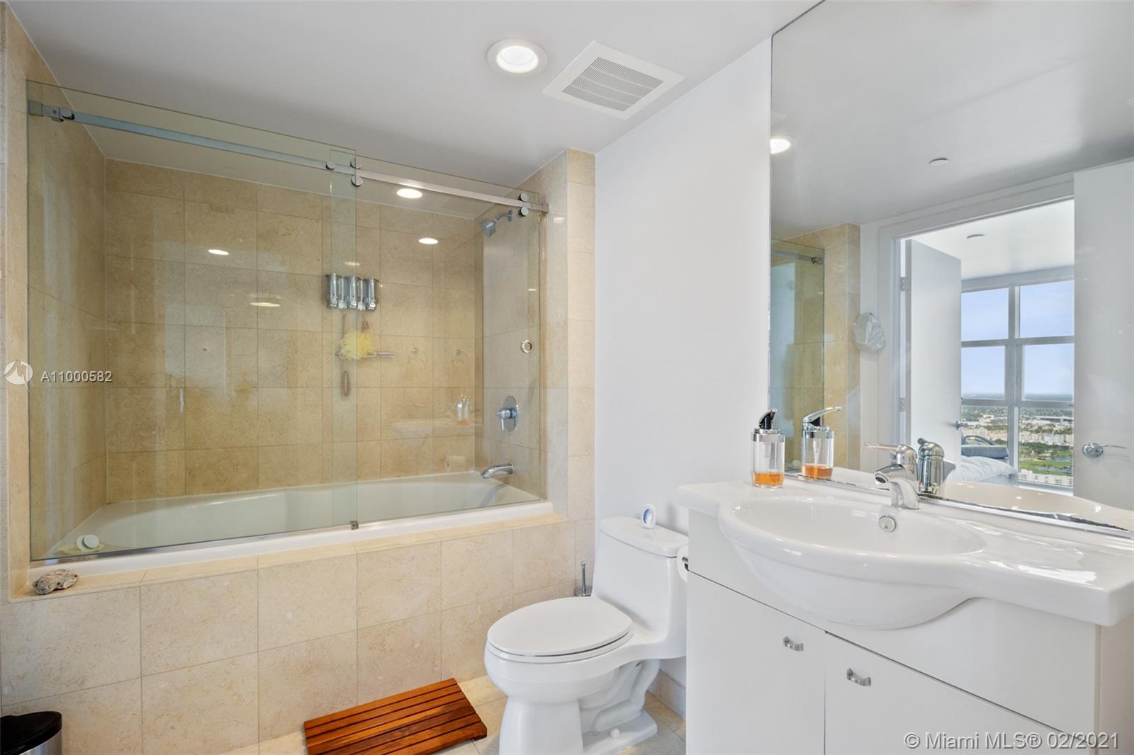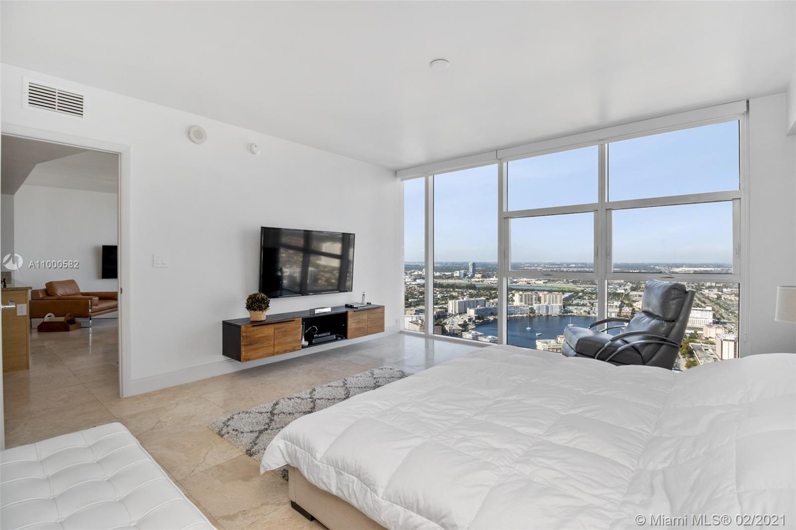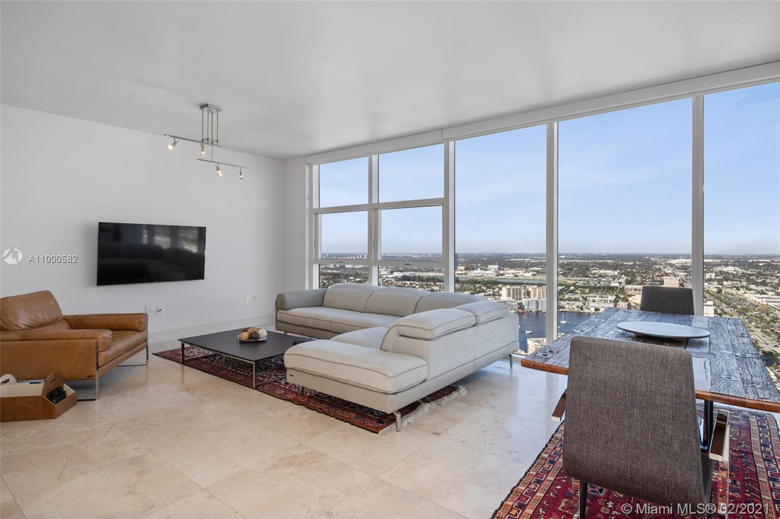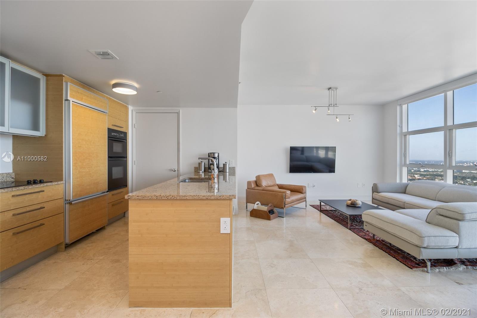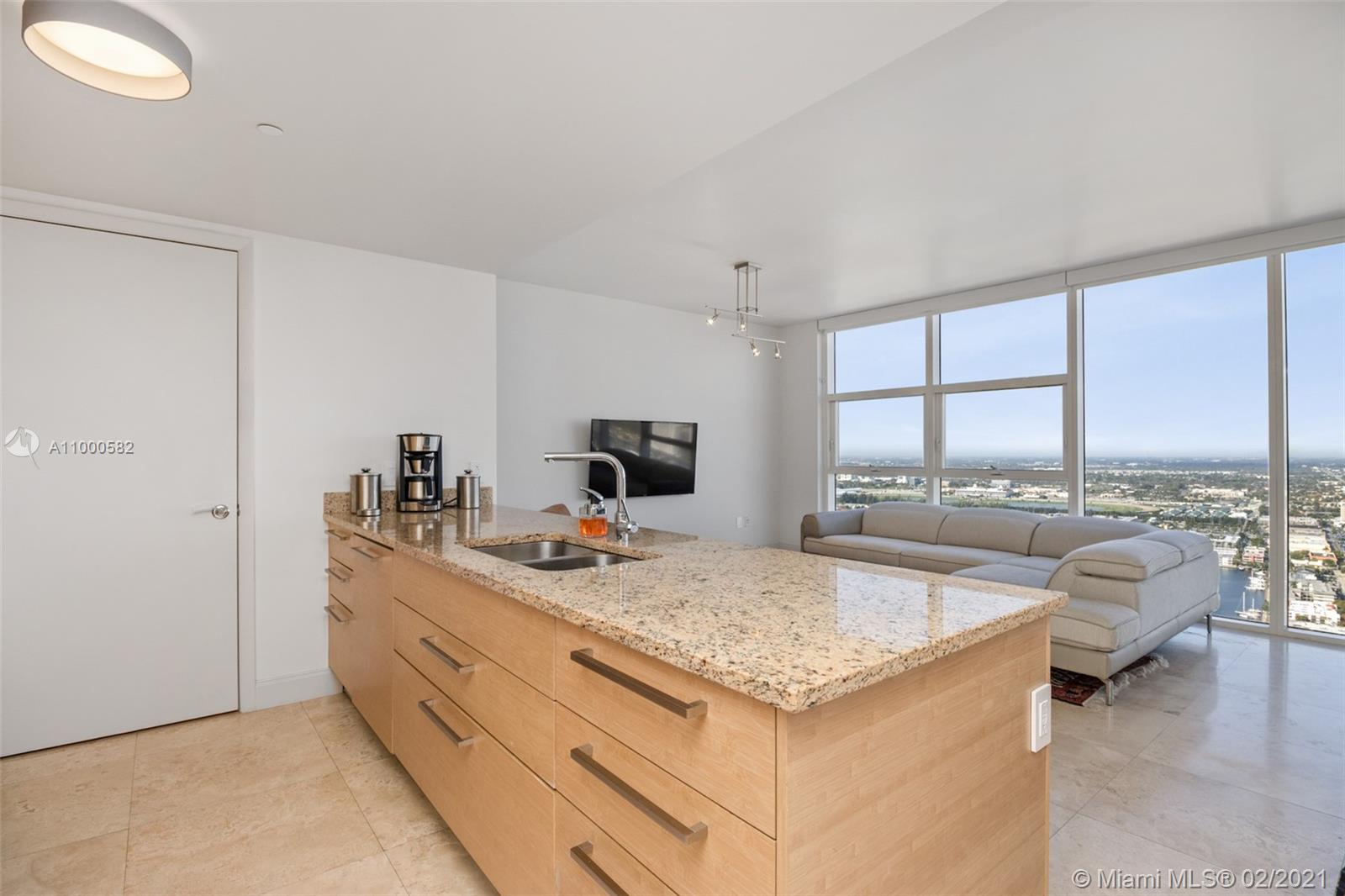 Spectacular One bedroom and one bath unit with marble floors throughout. Model F with unobstructed City and Intracoastals views from this 48rd floor. This exquisite unit offers an Euro style kitchen with granite counter tops and Kitchen Aid appliances, granite counter tops and built in closets. Amenities include state of the art fitness center, 3 resort style pools, full time concierge, beach service, 1 covered parking +1 free valet parking.