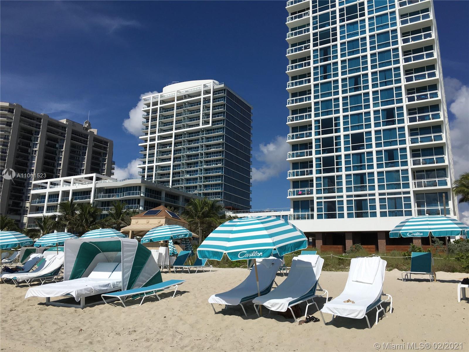 BEST DEAL at the Carillon Spa and Residences. This 2BR/2BA has water views of the intra-coastal as well as the City Skyline and an extra-large balcony accessible from all rooms. Split Floor unit. Amenities INCLUDE 8 annual passes for nonstop daily fitness classes, First Class signature SPA, Beach and Pool Service, Gourmet Restaurant, Delicious healthy meal and cocktails served on the Beach, by one of the 4 pools or at the outdoor restaurant. Monthly maintenance includes $100 credit per month for the food and $100 credit for the spa. Immerse yourself in the luxury & wellness lifestyle today. Unit is currently rented.