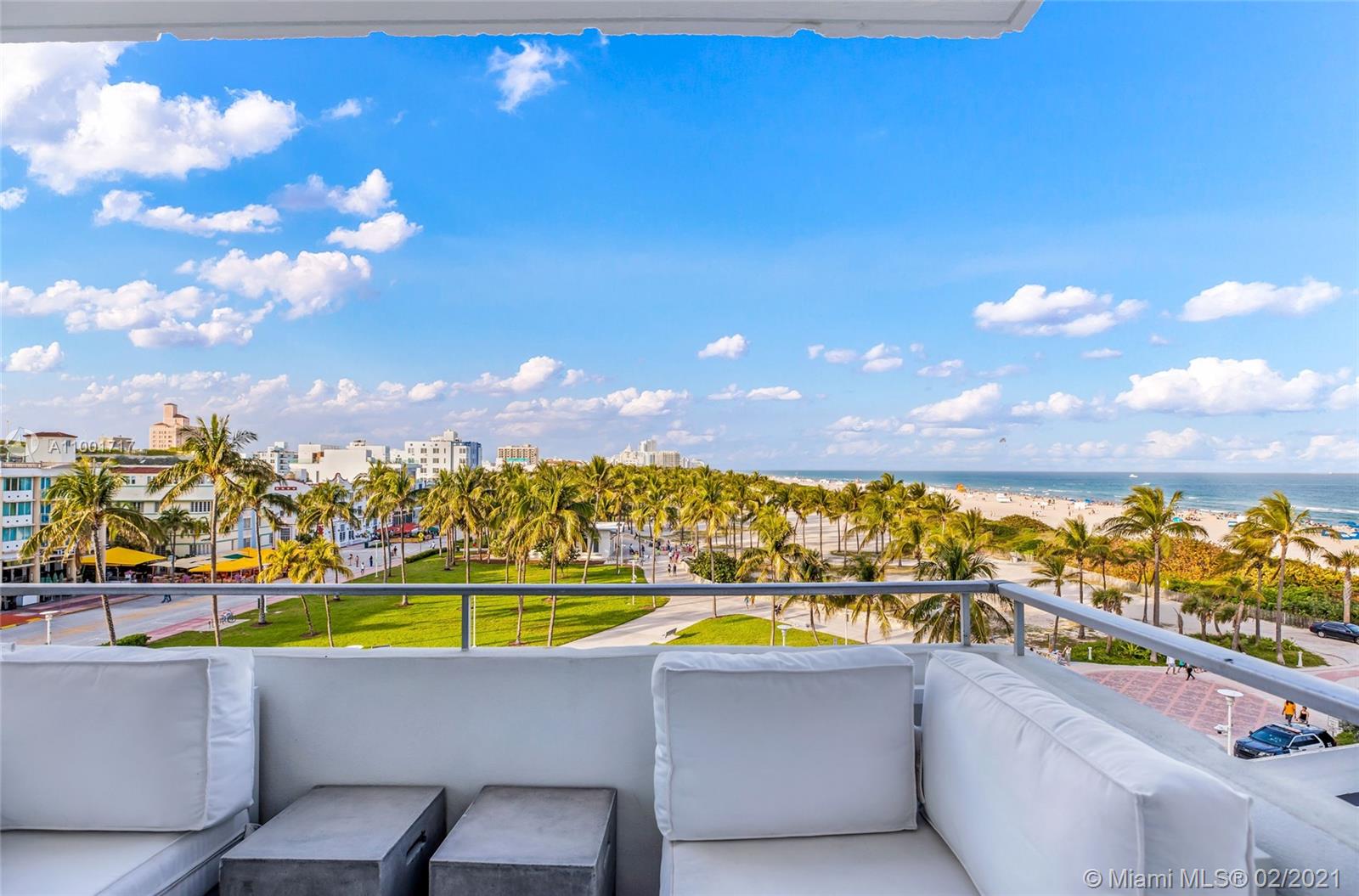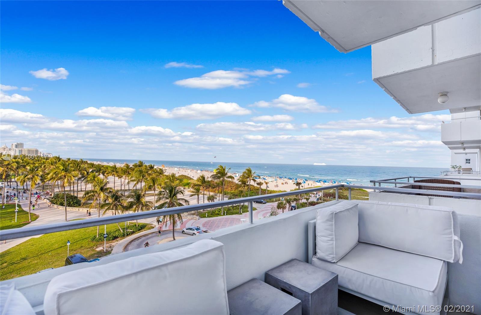 Majestic North East views of the ocean , park and ocean drive from this gorgeous unit. Totally and tastefully renovated spacious 1/1 designed by AJP Design. Italian porcelain floor throughout , Stainless steel appliances , kitchen island w built in wine cooler , extra large shower room , recessed lighting , custom made doors , office nook and many more features. The Royal Atlantic sits right on the sand with private beach service , gym , pool deck overlooking the Ocean. Perfect location south of fifth on Ocean Drive. Low maintenance fee. Could be combined with the adjacent unit 623 to create a magnificent 1,300 sq ft apartment.