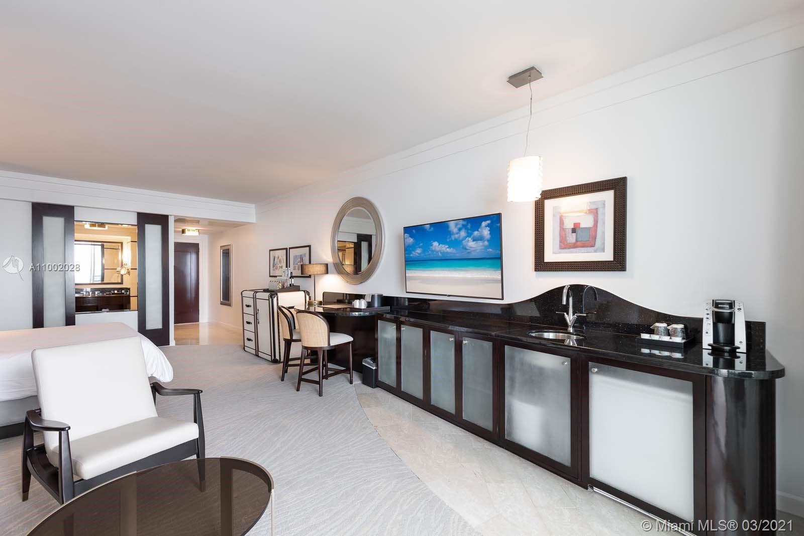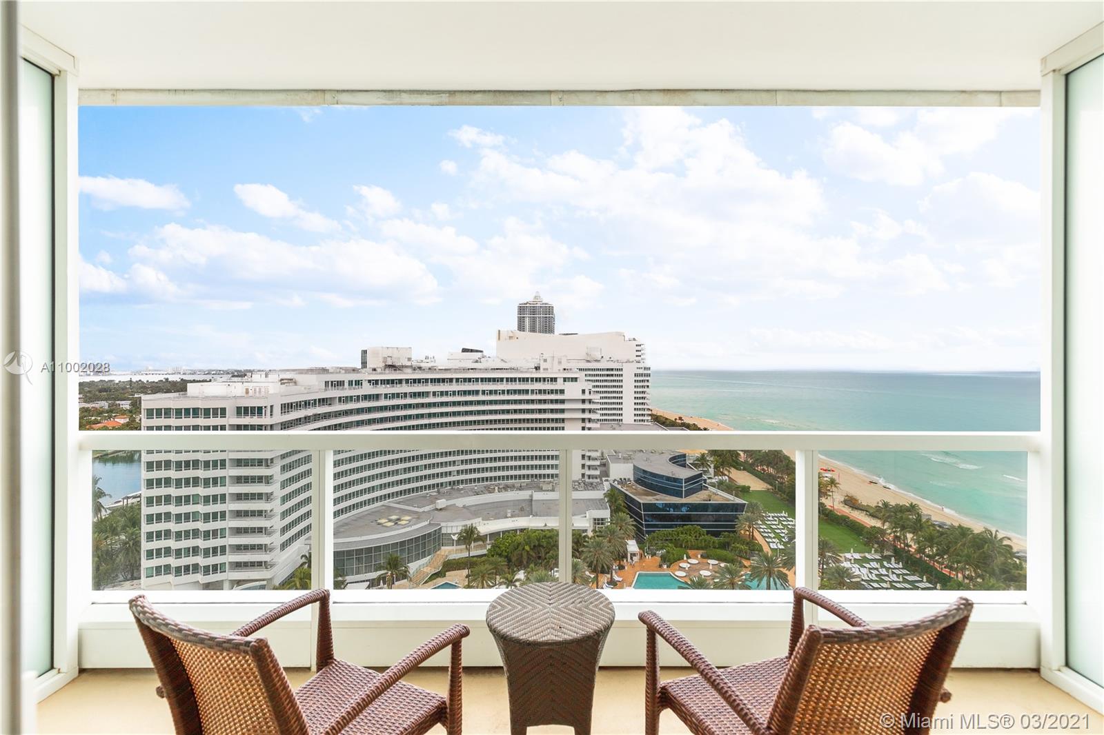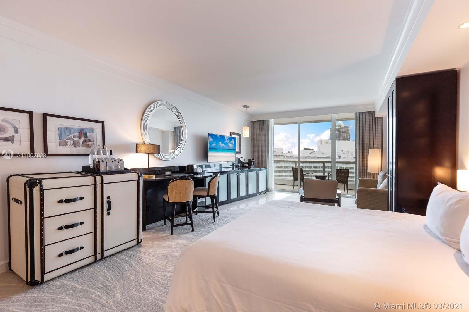 Beautifully appointed refurbished Jr Suite at the infamous Fontainebleau Hotel has ocean and pool views from the 16th floor. This lovely Jr Suite has a full luxurious bath. Low maintenance fees include: local calls, electricity, valet parking, daily breakfast in owners lounge. Enjoy full service, a private Owner's Lounge, King size bed, a sleeper, & much more to enjoy the resort living. Owner has the option to enroll in the hotel rental program and receive income when not in use. The Fontainebleau Resort's amenities are Five Star with luxury amenities sitting on 22 oceanfront acres. Fabulous award wining restaurants on premises; LIV Nightclub, gorgeous full service Lapis Spa, state of the art fitness center,