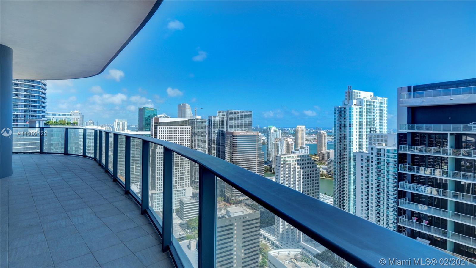 Beautiful corner unit located in the Brickell Flatiron. Located on the 49th floor, this unit has 2 beds/2.5 baths and a den with a panoramic view of the Miami skyline and bay. Italian porcelain tiles floors by Casalgrande Padan and 9 foot high ceilings. The kitchen features all Miele appliances and an island. Amenities include rooftop pool and spa, 6,300 Sq Ft gym with Pilates, Yoga, Aerobics Studio, and Juice Bar.