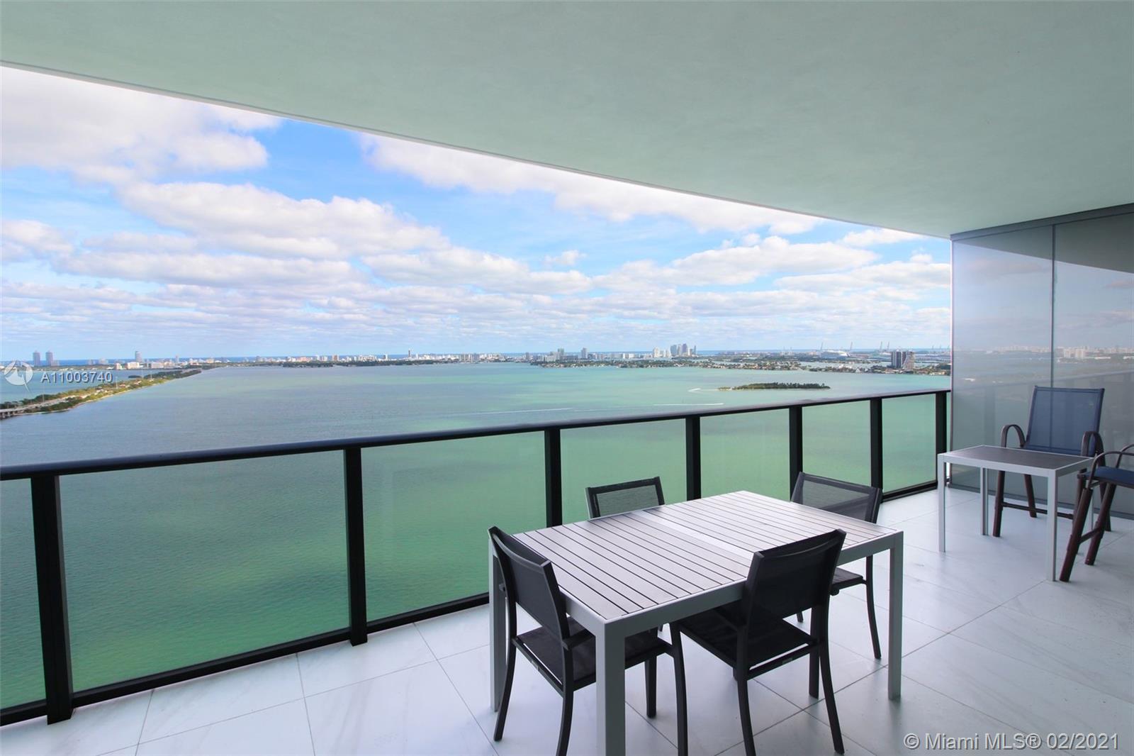 Beautiful 2/2 with unobstructed bay and ocean views. Enter through your private foyer to experience a true Miami waterfront view. Light porcelain flooring throughout with custom closets and electric window treatments. Wolf and Subzero appliances complete this spectacular unit. Amenities include 24 hour doormen, multiple pools, spa, fitness center, tennis courts, business center, theater and children's play room. Make an appointment today!