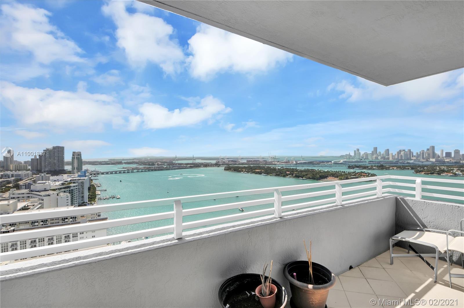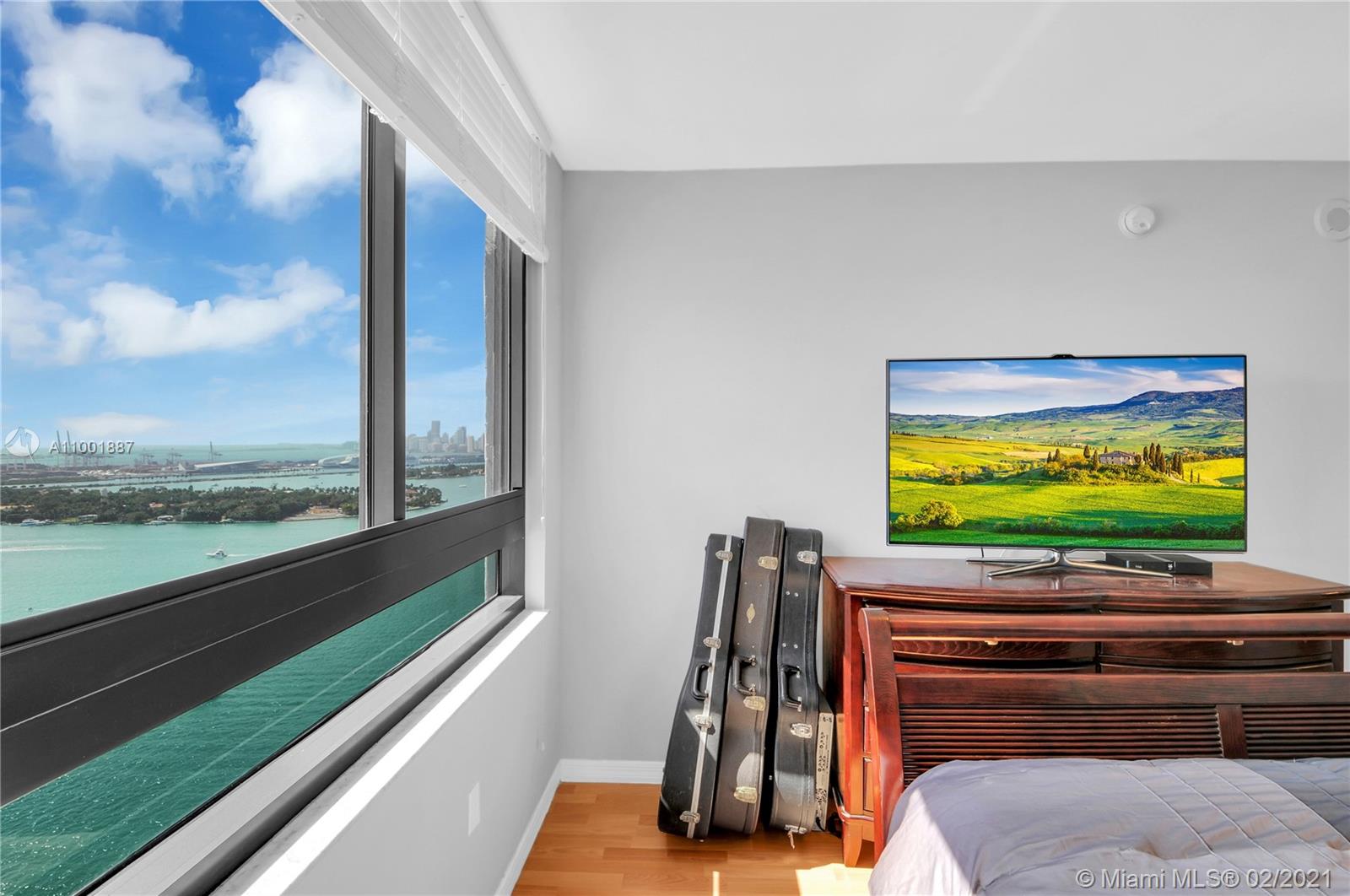 Spectacular views from this 2/2 at Waverly South Beach. Direct views of downtown, Fisher Island, South Beach, and more! South side of the building with tons of light. Building has very modern and a bayfront pool, fitness center, party room, and convenience store. Blocks to Lincoln Rd and anything you need.