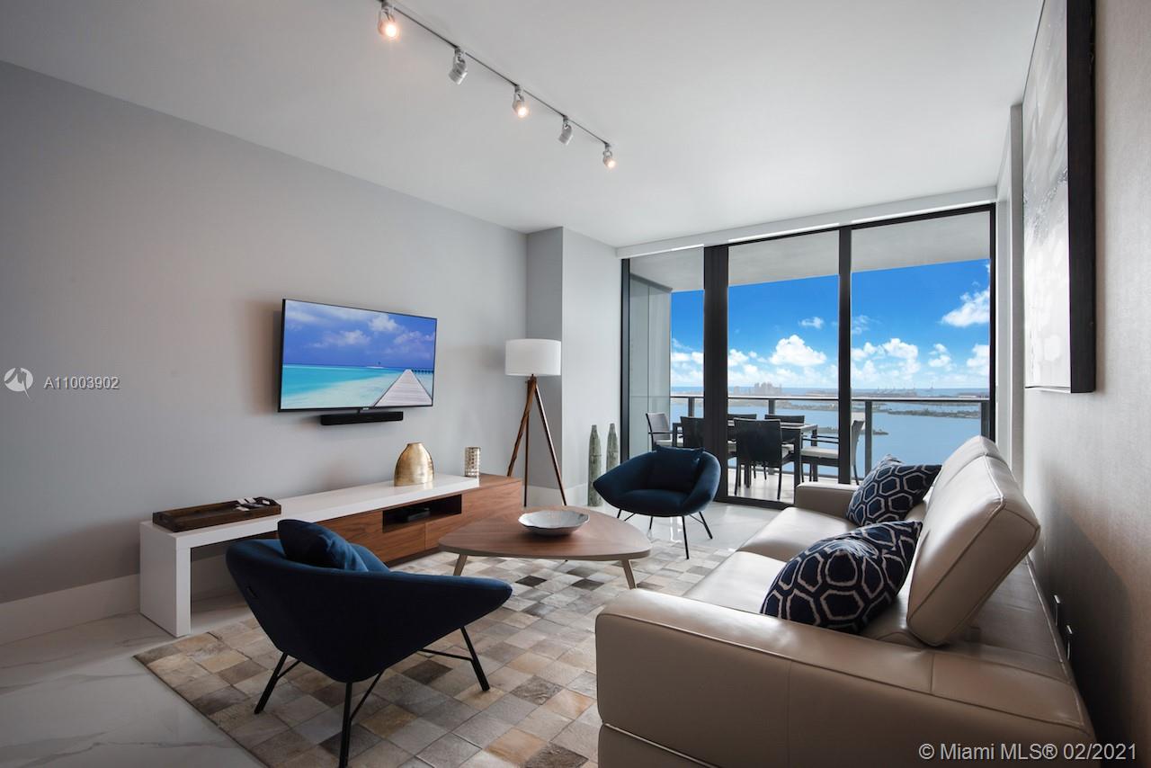 Luxury, new construction available for sale at Paraiso Bay in Edgewater, Miami. Stunning designer turnkey residence. Enjoy direct water views from the 35th floor in this spacious 2 Bedroom/3 Bathroom unit overlooking Biscayne Bay. Private elevator entry & large balcony. Open floor plan with pristine finishes, including stainless steel appliances. Unit is upgraded with closet build-outs, elegant wallpaper, bar extension, and much more. Enjoy Paraiso Bay's 5-Star resort amenities near 5-acres of gardens and parks, an exclusive marina, a waterfront Beach Club, and AMARA restaurant. The Edgewater neighborhood/Paraiso Bay is just minutes from the heart of Miami's vibrant arts, entertainment, and design districts and famed Miami Beach.