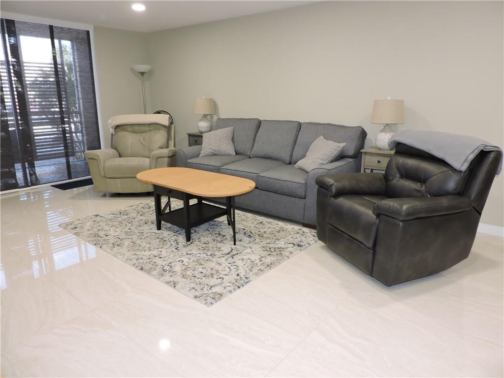 BEAUTIFUL, BRIGHT, SPACIOUS CORNER UNIT TURNKEY FURNISHED, REMODELED WITH MODERN UPGRADES & A CLEAN CONTEMPORARY LOOK, NO AGE RESTRICTIONS, RENT AFTER 1 YEAR, THIS CONDO IS TOTALLY RENOVATED. 24"X48" CUSTOM IVORY PORCELAIN TILE IN MAIN LIVING AREAS. LARGE EAT-IN KITCHEN W/ STAINLESS STEEL APPLIANCES, GRANITE COUNTER TOPS W/ CUSTOM TILE BACKSPLASH & SMOOTH CLOSE CABINETRY. NEW LED LIGHTING W/ PROGRAMMABLE DIMMER SWITCHES. MASTER BATHROOM HAS OVERSIZED SHOWER W/ PEBBLE STONE FLOORING, UPGRADED PLUMBING INCLUDING RAIN SHOWER, DUAL SINKS. NEW WATER HEATER & A/C. LOTS OF CLOSET SPACE, NEW INTERIOR DOORS & HARDWARE, PLUS MUCH MORE. THIS IS A RARE GEM. COME & SEE THIS BEAUTY! CLOSE TO BEACHES & SHOPPING, CLOSE TO CASINO AT DANIA BEACH, MINUTES TO AIRPORT & SEAPORT, COMMUNITY CLUBHOUSE & POOL