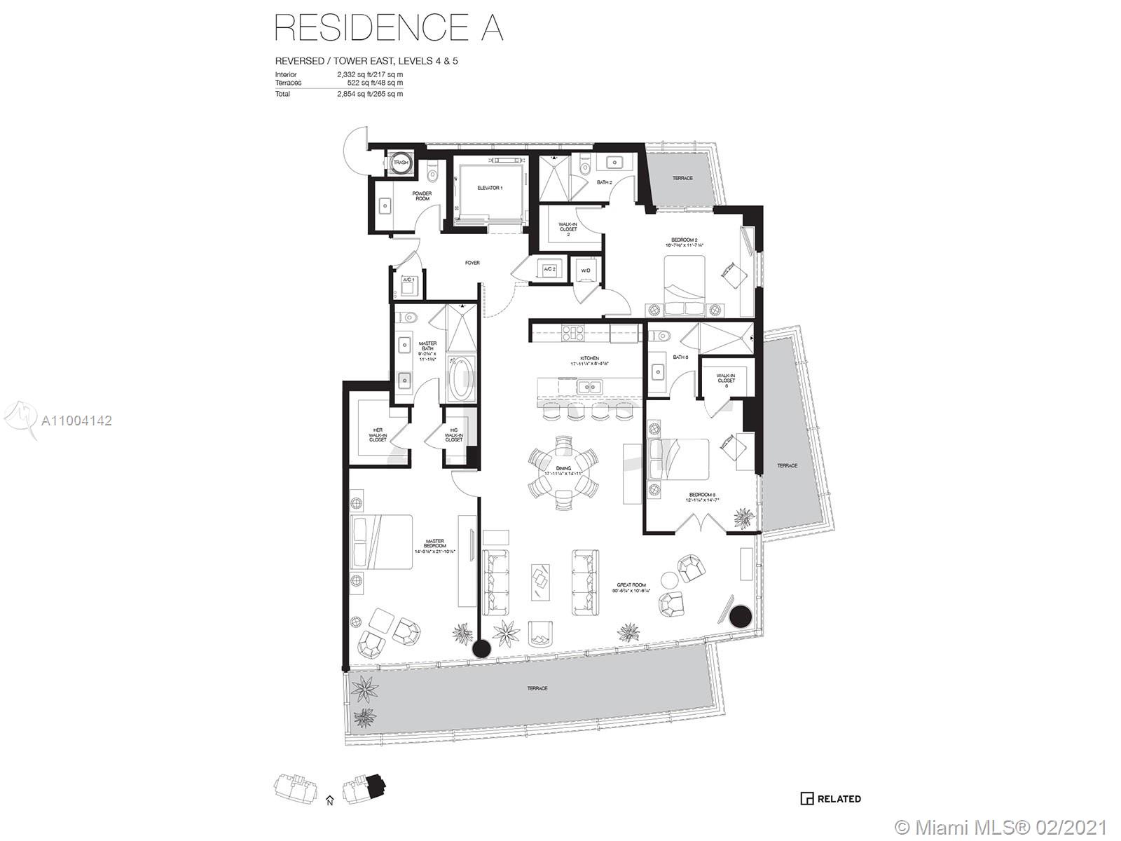 • Жилая площадь: 2332 фут² / 217 м²