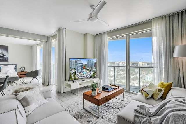 VERY STRONG RENTAL HISTORY and 2021 REVENUE Locked in! TURNKEY PENTHOUSE! Atlantic/ Intracoastal Views in the heart of Fort Lauderdale beach, this unit is a magnet for vacationers/telecommuters. Amazingly flexible rental policy attracts top flight tenants seeking top floor luxury. With Sophisticated city vibe, this 1700 square foot 2 BR 2BA penthouse includes: Split open floor plan with spacious living /dining areas and 2 master king size suites & spa like baths; Breakfast island and floor to ceiling windows; Ideal for entertaining . Washer/dryer & home safe, stainless appliances & stone countertops; Expansive balcony! Garage parking, concierge and 24 hour security. TWO heated pools all just steps to the ocean's edge! Newly furnished Rare opportunity for under one million!