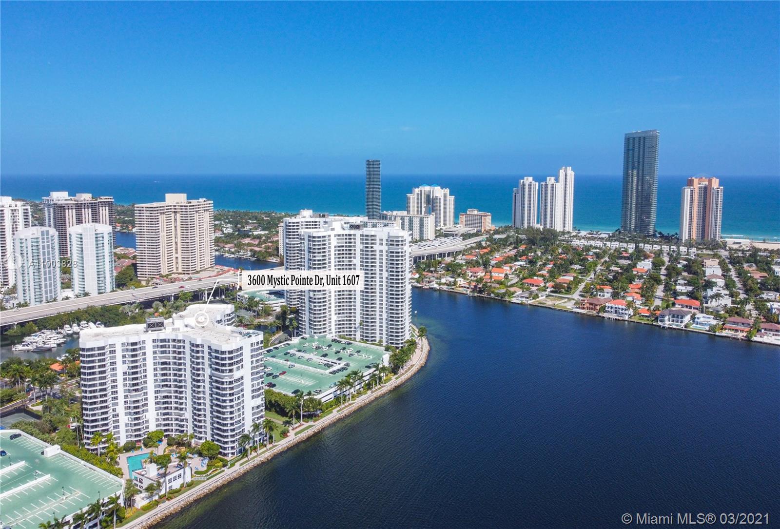 Beautiful corner condo located in the sought-after Mystic Pointe community in Aventura. Amazing panoramic views and the intracoastal. Very large main bedroom w/en-suite bathroom. Dual vanity, bathtub & separate shower. Large walk-in closet. The living room offers plenty of light & serenity while enjoying boats in the marina. Washer & Dryer. Minutes from the Aventura Mall, Sunny Isles Beach & houses of worship. Amenities incl. very large pool, sauna, spa, restaurant, hair salons, mini market, 8 tennis courts, tennis pro. The City of Aventura is strategically located close to FLL & Miami airports. Great schools.
