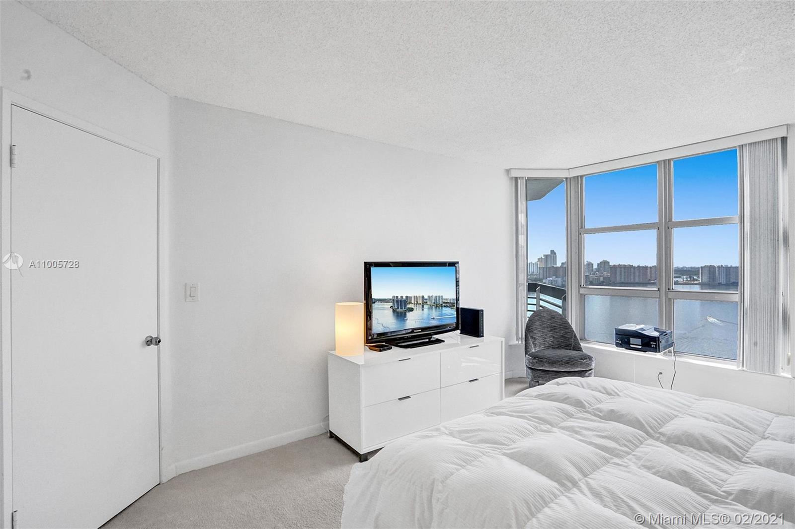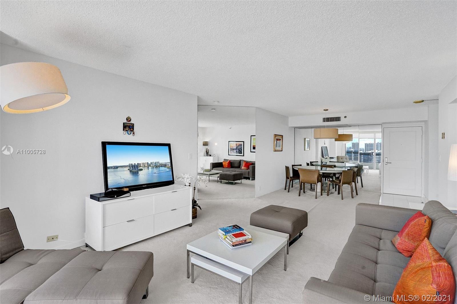 Priced to Sell: Enjoy FOREVVER VIEWS to the south all the way to downtown Miami, the ocean, the bay, Aventura and Intracoastal. Light and bright. Ensuite washer and dryer, split floor plan, open kitchen. Impeccably maintained. Because unit is in the curve of the building (first unit from elevators), there are no birds, and no wind. Enjoy sitting on your balcony undisturbed for hours on end. Aventura is in the NE quadrant of Miami-Dade. It is one of the most coveted zip codes in Florida, with A plus public and charter schools, world-renown shopping, restaurants and soon, the Bright Line, which will zip you downtown in 15 minutes. SOME FURNITURE NEGOTIABLE. No assessments, pets allowed, one assigned covered parking space, 2nd space avail. to rent $33/M $2,000, in reserves.