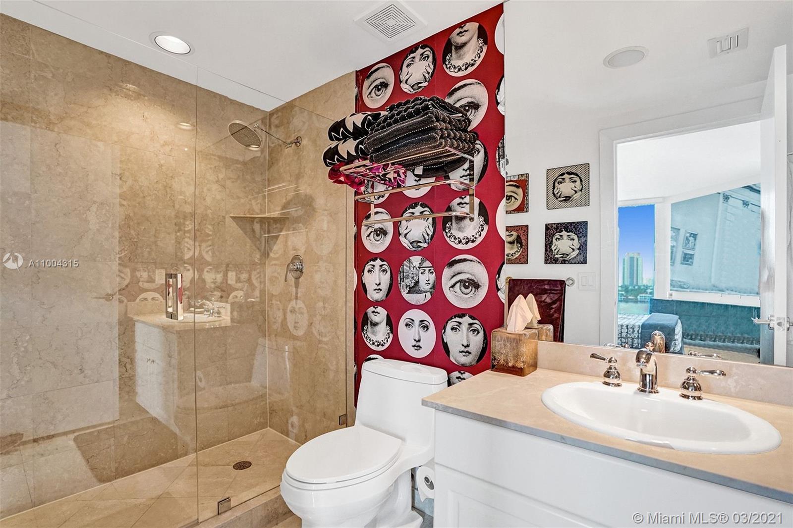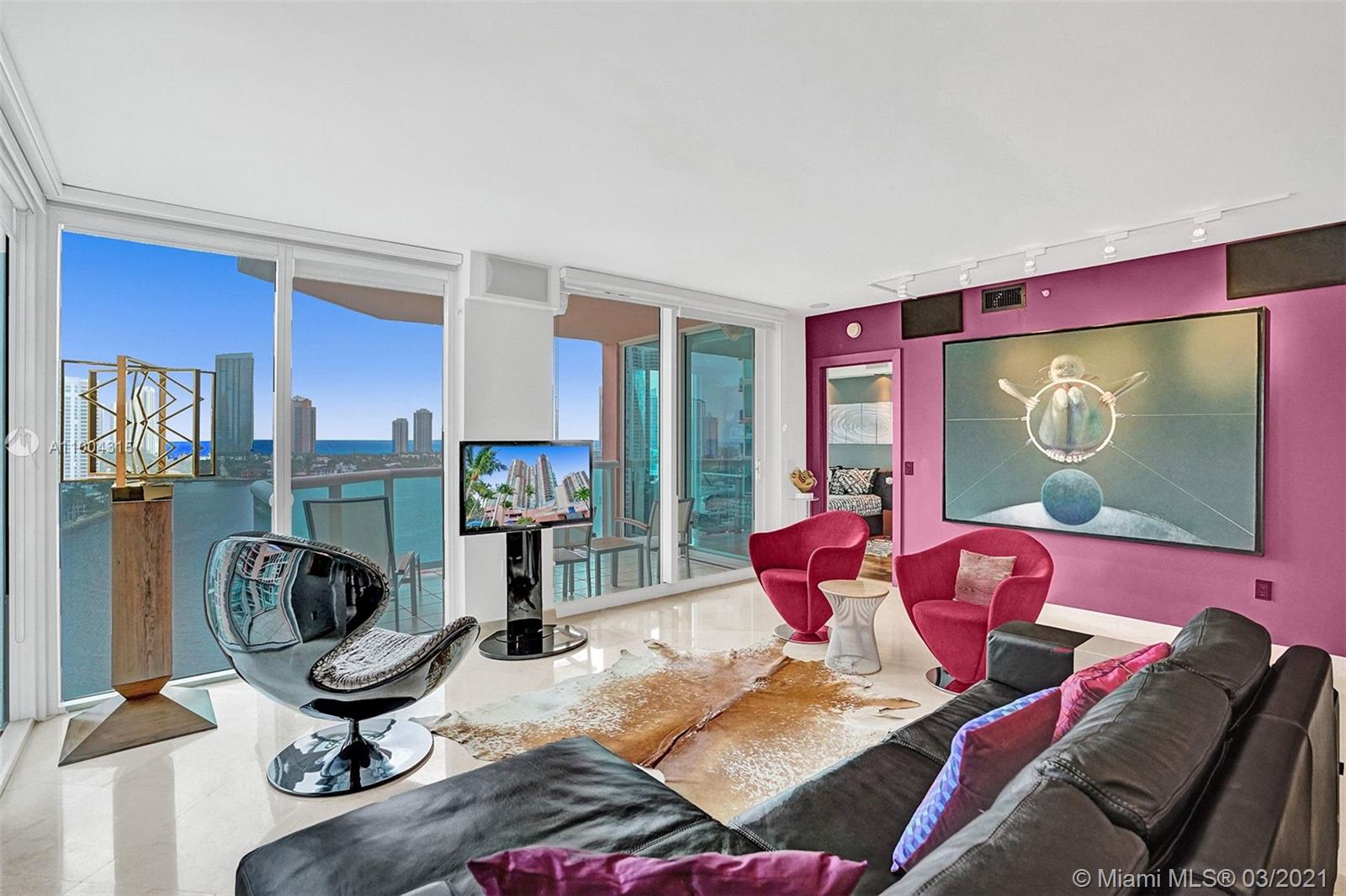 Enter thru a semi-private foyer and enjoy the spectacular ocean and bay views from this spacious 2 bed/2.5 bath unit. Completely renovated for your pickiest client with top of the line finishes. Spacious living and dining area with floor to ceiling glass windows, split bedroom layout, large eat-in kitchen. Luxury building with resort-style amenities including gym, spa, private marina, tennis courts, 2 pools, and more! Fantastic location, 5 minutes from the beach, walking distance to Aventura Mall and Founders Park.