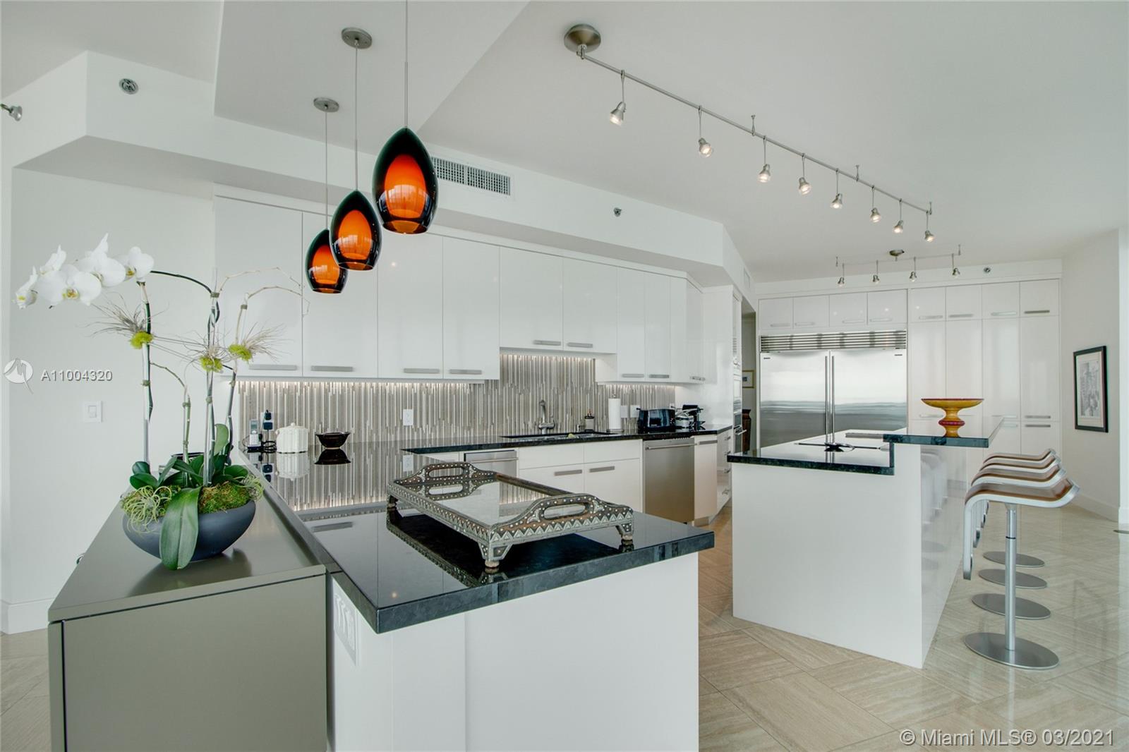 Here is your chance to own the sub-penthouse at the prestigious full-service, Bristol Tower. The absolutely gorgeous unit, boasts one of the most breathtaking views in all of South Florida. This large spacious unit has 4 beds, 4.5 baths, all in suite bathrooms, two master bathrooms, an office, laundry, private elevator, entry foyer, 3 assigned garage parking, unlimited valet parking & 2 storage units. Total SF of the unit including living & 2 substantial balconies is 5,935 SF. Amenities include Tennis, Gym, Kids Pay Area, Swimming Pool, Gym/Spa, 24hr Doorman Security, and more. This unit has to be seen to be believed.
