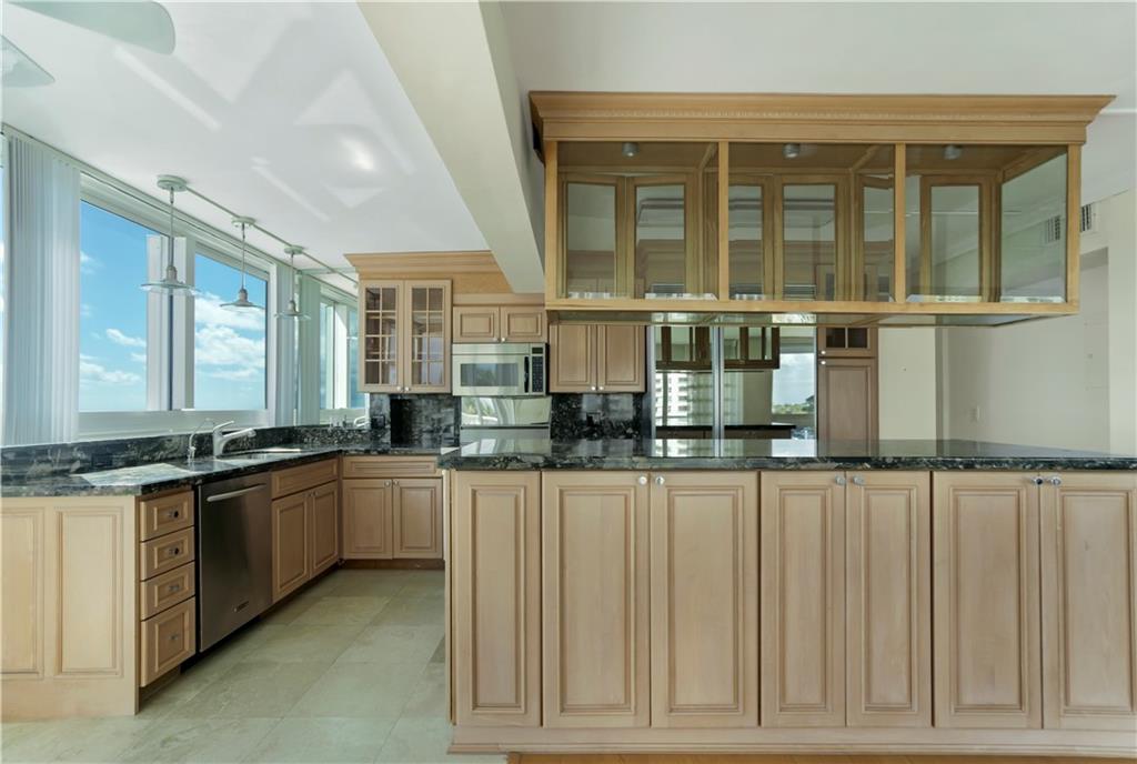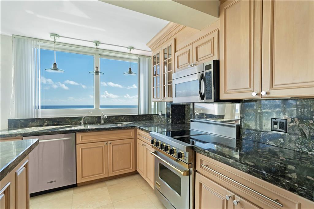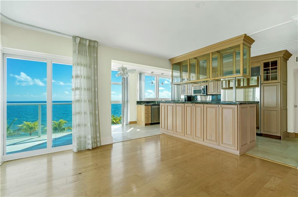 Direct Ocean Views from this NE corner unit. Foyer entry, 2 split master bedrooms and 2.5 baths. Incredible Views of Ocean in all directions. Open floor plan with huge kitchen plus center island, granite countertops and stainless appliances. Eat-in kitchen area and formal dining area. Oversized living room with floor-to-ceiling impact windows and wrap around terrace. Walk-in closet and inside laundry. Building located directly on the sand with private beach access, tennis court, pool and spa, garage parking, security building 24/7, gym and roof top Sky lounge.