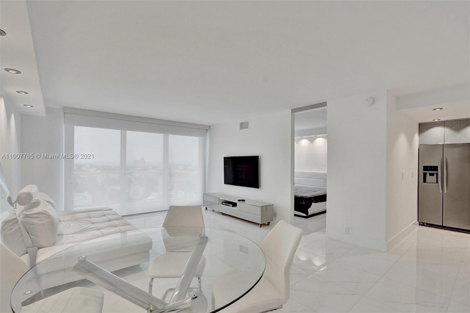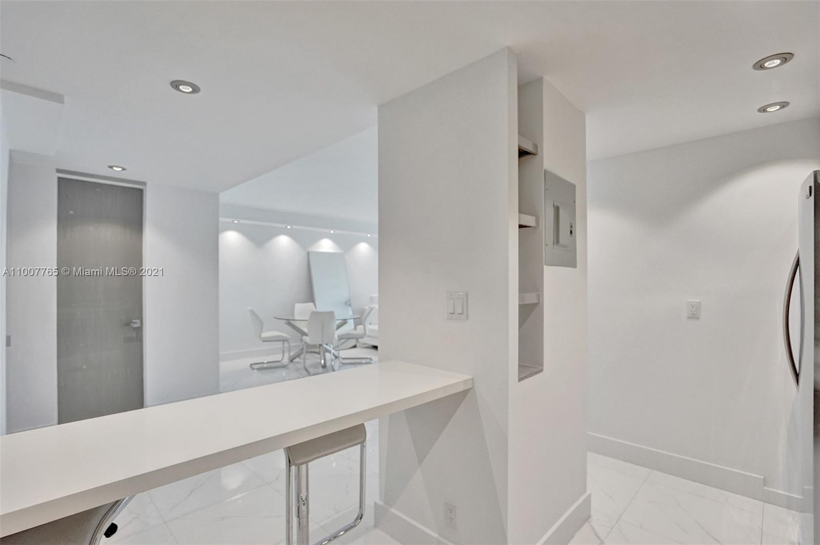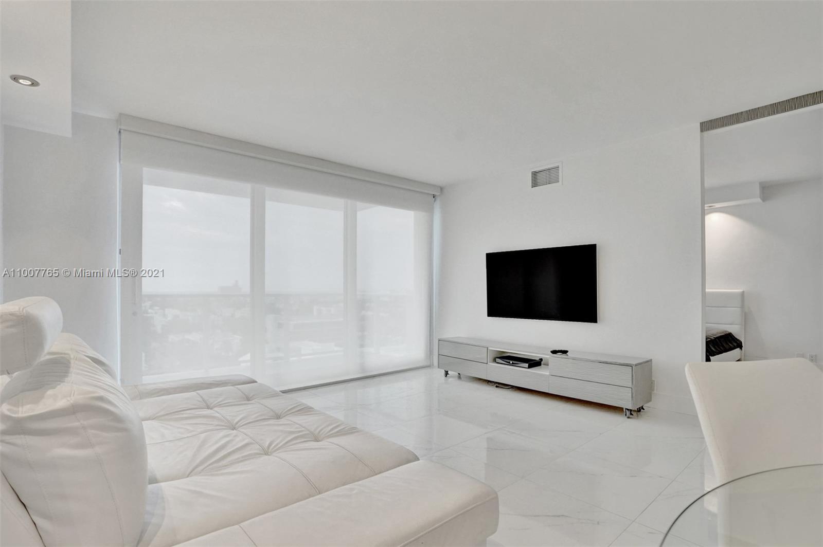 Charming complete renovated 1 bed 1 bath condo with balcony, right on the Bay. Contemporary furnished unit on the much desired West Ave. Renovated with top of the line, new porcelain floor, kitchen with Italian style cabinets, quartz counter, Stainless steel appliances, new bathroom with quartz counter and made to measure vanity. Live at the distinguished Mirador condo with breathtaking intracoastal and sunset views from the pool deck. Full Service Building, 24hs security, valet services, convenience store, gym, pet friendly. Cable and Internet are included in your HOA payments. Live next to the Mondrian Hotel, Whole Foods, Restaurants, shopping of 5th Ave, Lincoln Rd and SoBe night life.
