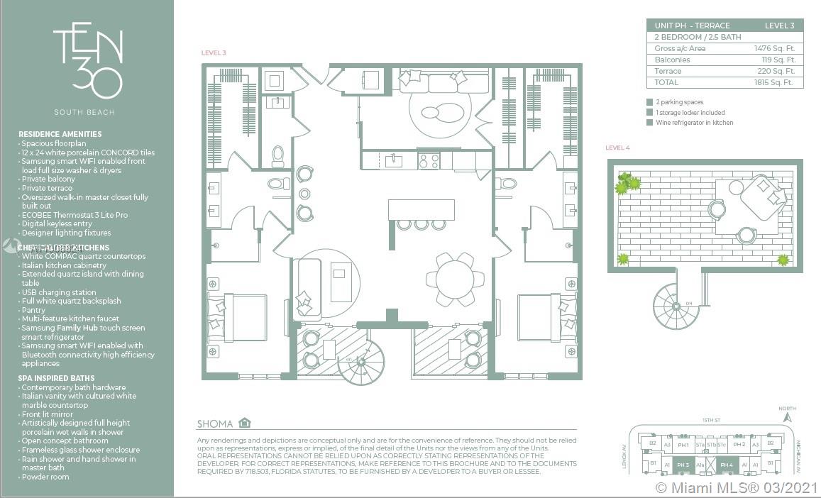 Spacious and fabulous 2BR+ Den in the heart of SOBE. 10ft ceilings, 2 studio gyms, rooftop pool with resort style seating, rooftop bbq area and outdoor yoga/meditation lawn. Italian cabinetry, quarterized countertops and samsung wifi enabled appliances for Smart home interaction and automation 24-hours doorman, secured garage w/ assigned parking. New construction. Large balcony with southern exposure.