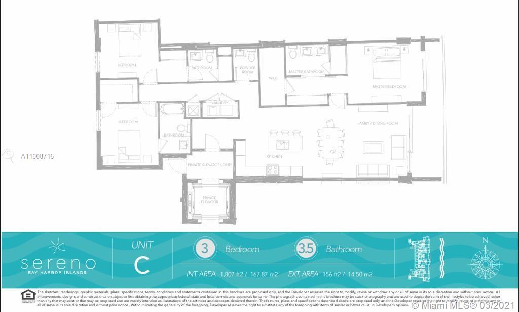 Best location of the island with open bay views, Sereno is more than a residential experience, it is a one-of-a-kind residence that features unparalleled amenities, rooftop pool with sunset and sunrise view, barbecue area, great gym, front desk 24 hours. You will enjoy your own private island retreat, just minutes from Bal Harbor Shops and white sand beaches. Unit comes with 2 parking spaces (L34 and L38), storage unit, private elevator and a fantastic view. Unit is finished with ceramic tile floor, closets, electric blackout on all bedroom windows. Unit is rented until July 31st, 2021 ($5,500) In case of a sale, tenant has 60 days to vacate the property. Boat slip available for sale accommodating up to 45ft vessels! Best price in the building. Call me for showing instructions.