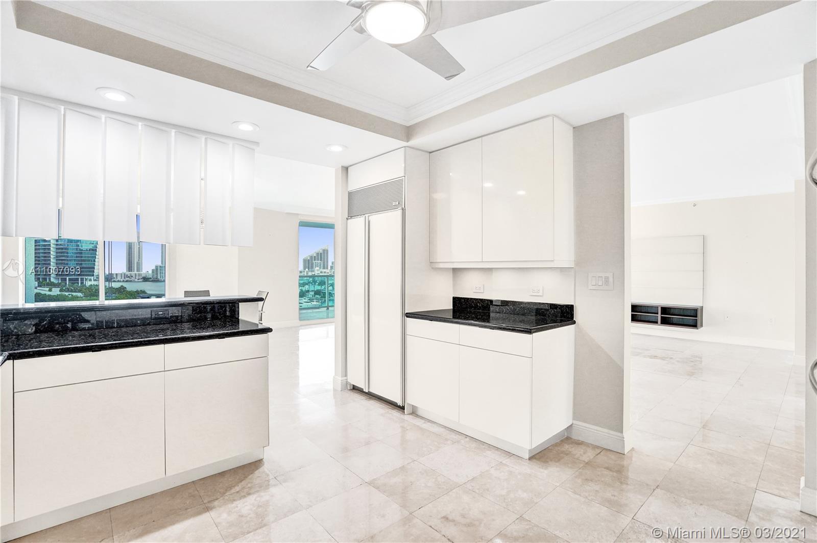 Unobstructed views from floor to ceiling windows. Filled with sunlight, spacious 2Bed + Media Room. Ocean and Intracoastal views from one balcony and marina view s from the other. Private elevator, marble and carpet floors, renovated kitchen, granite countertops & stainless steel appliances, spacious walk-in closets, large laundry room. In an elegant modern building, this exceptional home has open spaces and is designed for function & livability. Cable TV & internet included in maintenance. Easy to show.