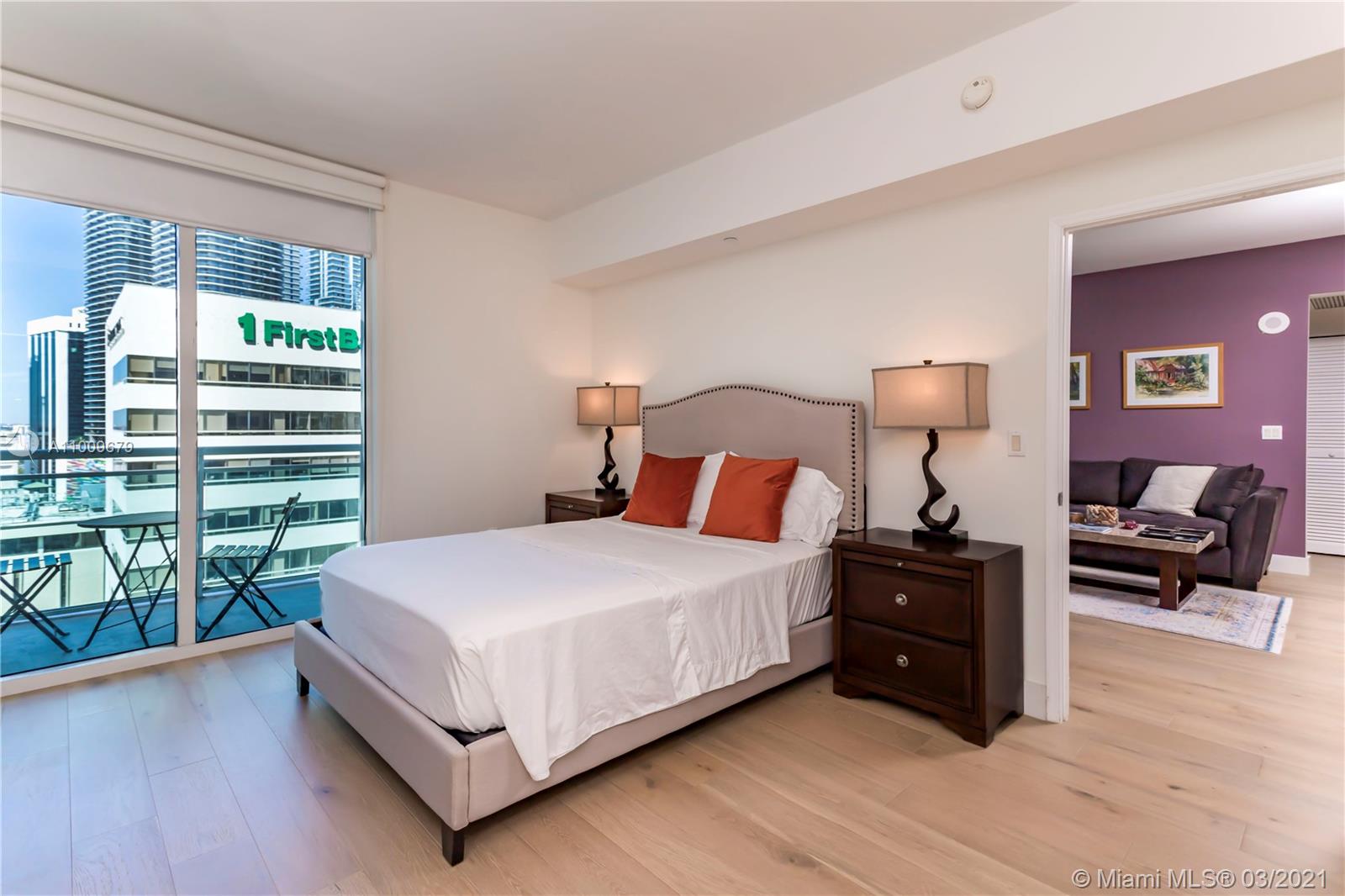 Exquisite 2 bedroom 2 bathroom, 15th floor unit with a spectacular city view! Unit features extremely rare European Oak wood floors, black stainless steel appliances, granite counter tops, floor to ceiling impact glass windows, a private balcony with glass railings, slide out kitchen pantry drawers, ample master bathroom storage space, walk-in closets in both bedrooms & washer/dryer in unit. Resort style amenities including a fitness center, 2 infinity edged pools, steam rooms, a theatre room, a club room & a lounge. 24 hour concierge & valet parking. Situated on the highly sought after Brickell Avenue, just blocks away from Brickell City Centre & in the heart of Miami's finest dining, shopping & night life.