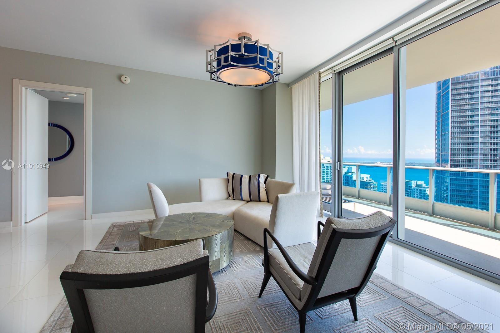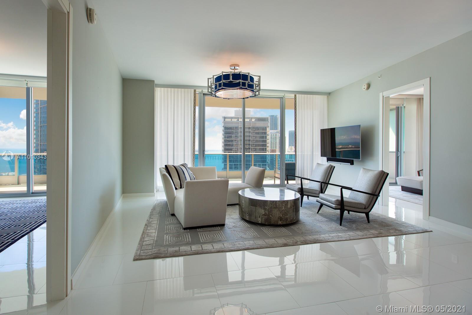 VIEWS- VIEWS -VIEWS! Picture perfect ocean, bay, Miami River, & Miami Skyline vistas from this “EPIC” residence. Spectacular, glamorous, and bright come to mind when describing this designer themed 2/2.5 penthouse-level residence, which is in the highly sought after "04 line" of the building. Have a drink and enjoy the view from the Art Deco themed Italian bar or the spacious 46th floor balcony. The open kitchen is outfitted with Miele and Bosch appliances, and state-of-the-art technology control systems including security, lighting, and window treatments are throughout. Epic residences feature luxury amenities including a private pool for residents and concierge-elements. This turnkey property designed by Taylor & Taylor can also be purchased fully furnished at LIST PRICE.