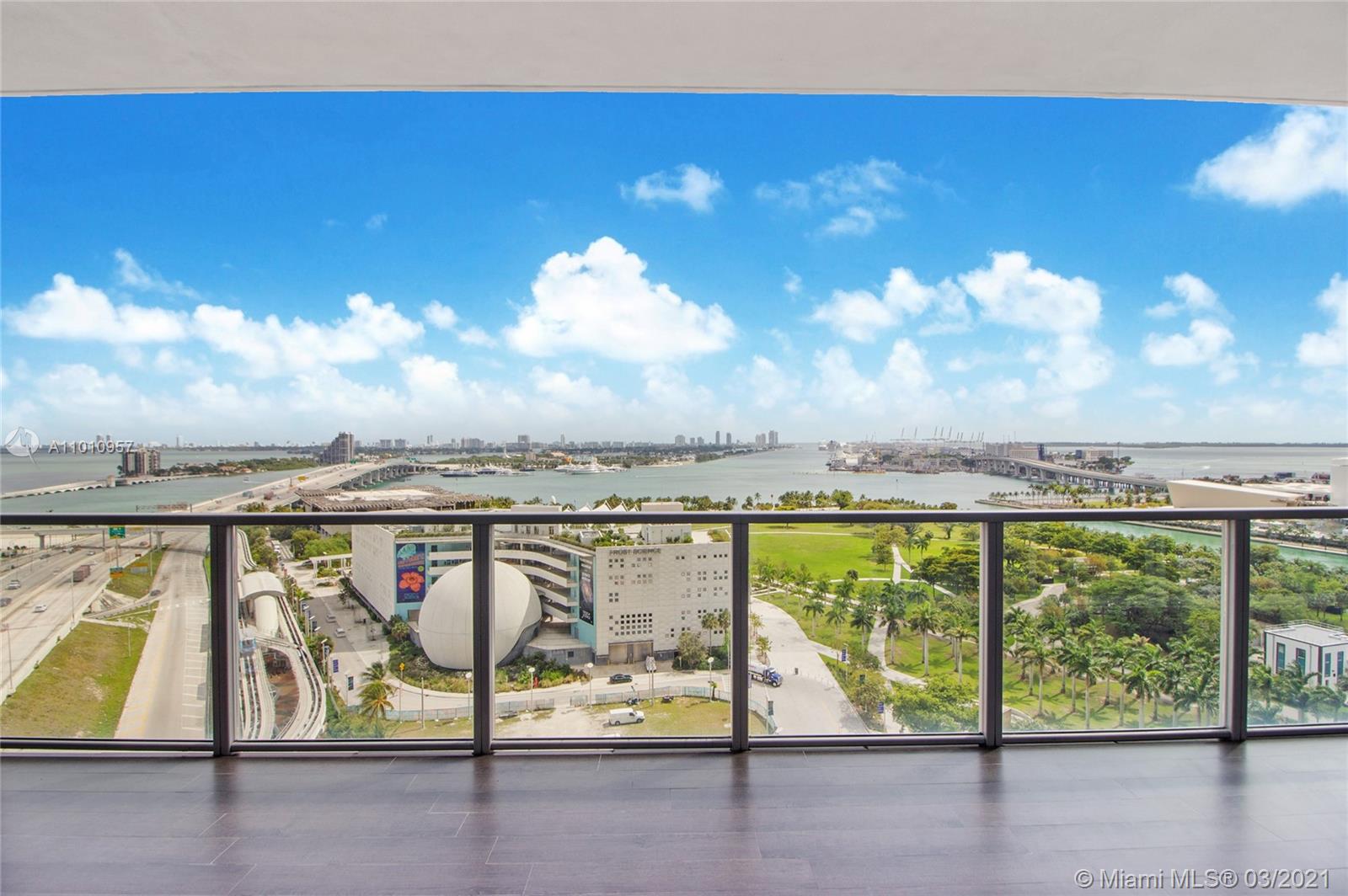 Stunning views of Biscayne Bay and Downtown Miami from this large 3 bedroom / 3.5 bathroom unit. Located in Downtown Miami, best location in Miami, steps away from Museum Park, direct access to main highways; 15 min to Miami Beach, minutes away from Brickell, Midtown and Wynwood, etc.. This Class A residential building has unique amenities such as Basketball half court, boxing gym, Yoga studio and full gym and spa (For kids: music classes, swimming clases). This luxury residence features private elevator access, porcelain tile floors throughout Viking appliances, walk-in closets and a spectacular open kitchen. One of only a select few units in the building with this expansive floorplan. Easy to show.