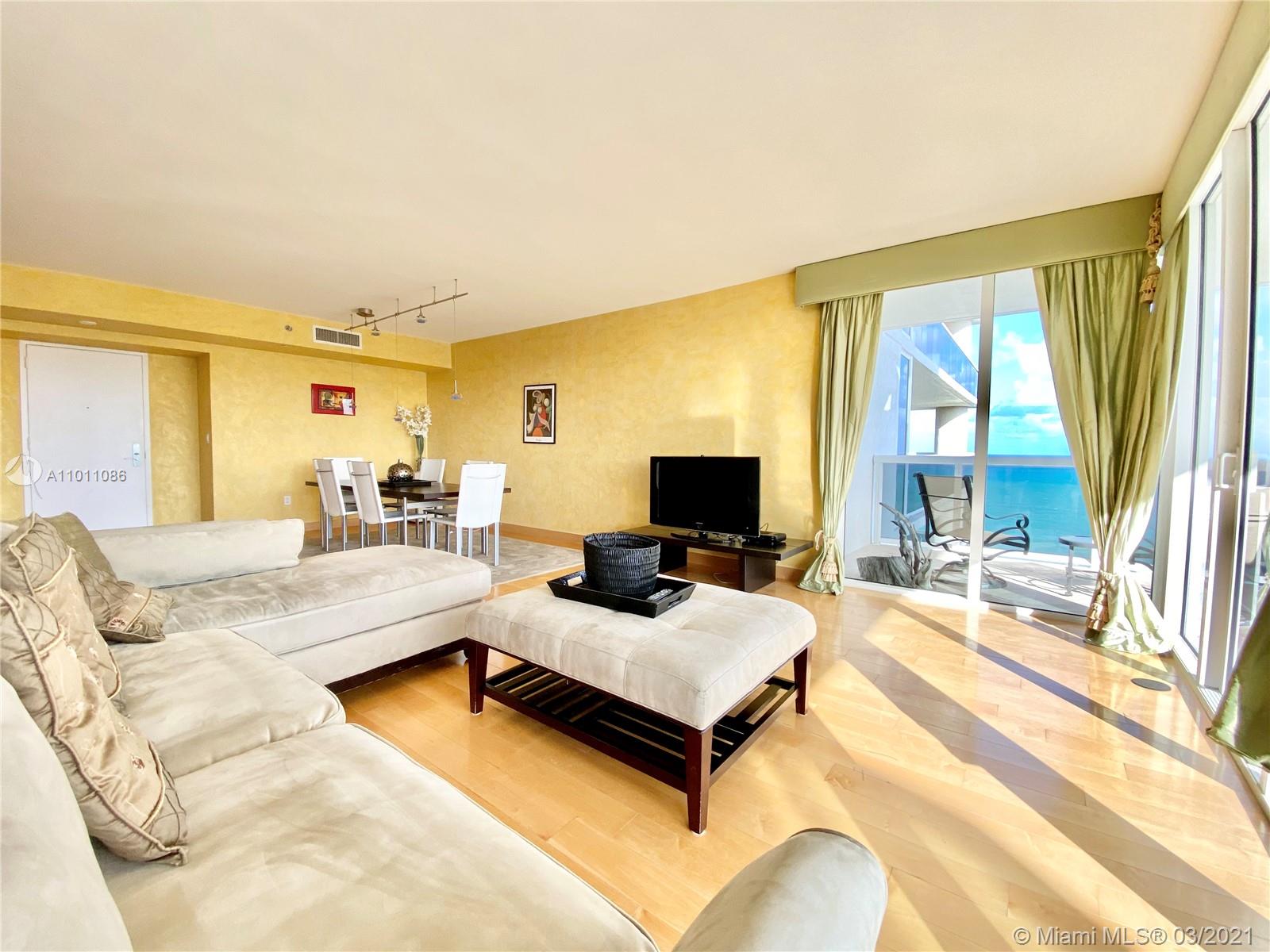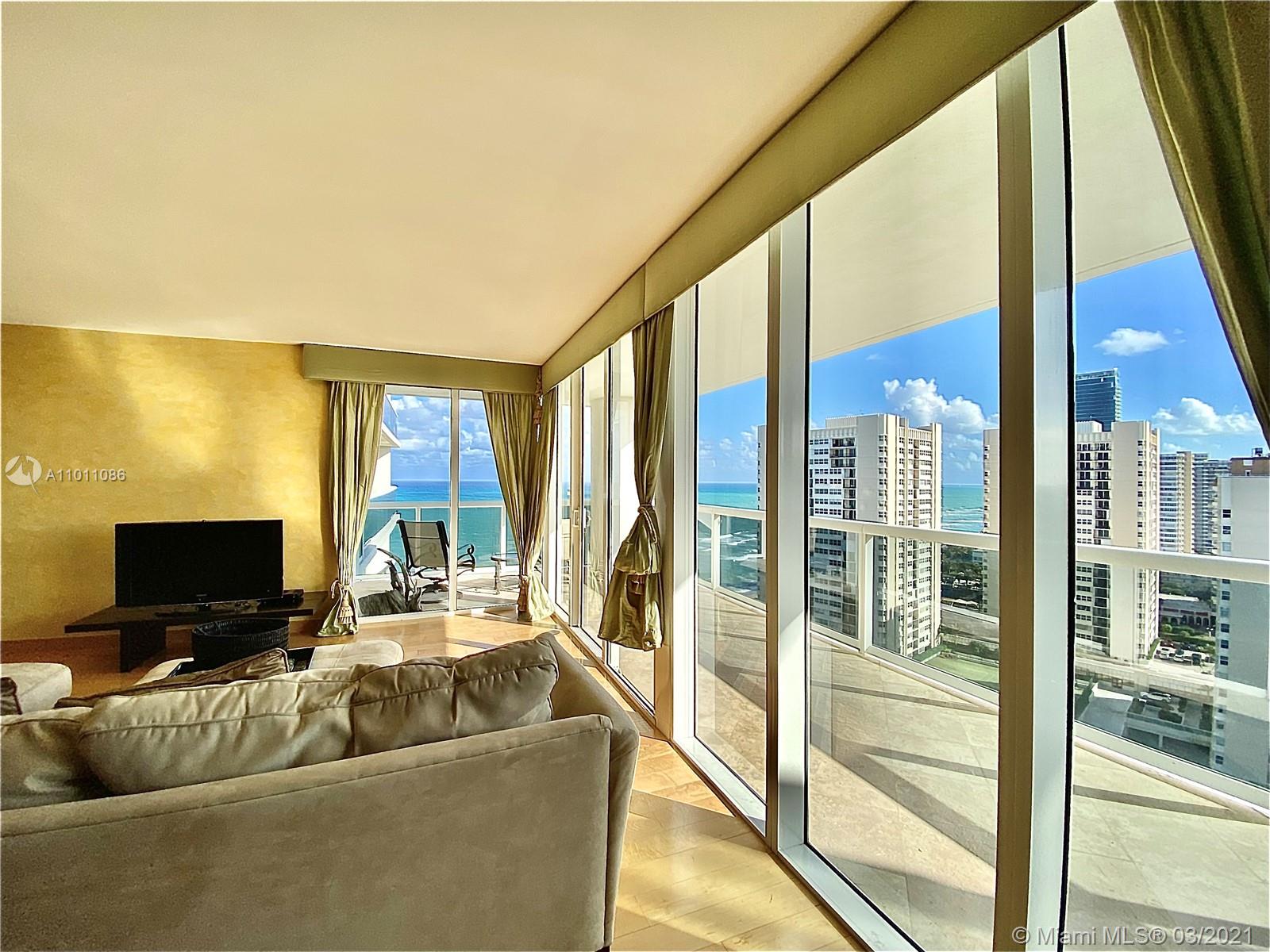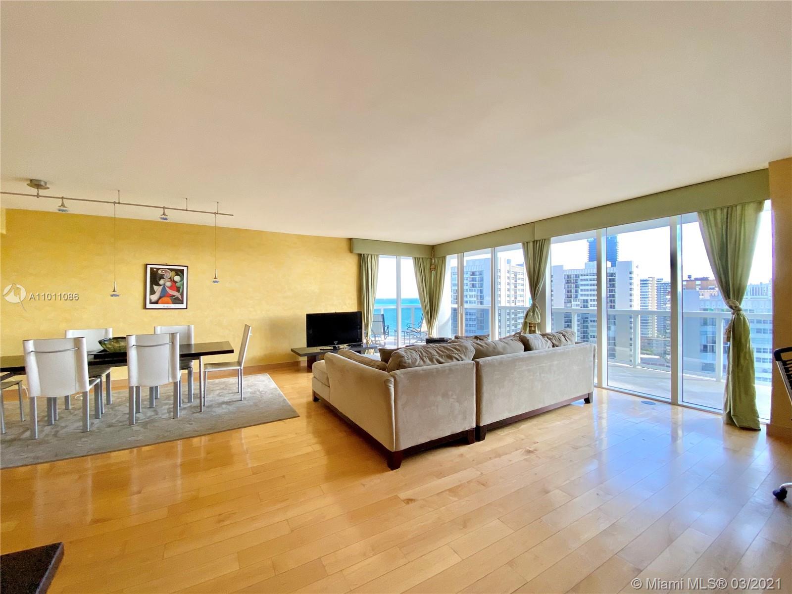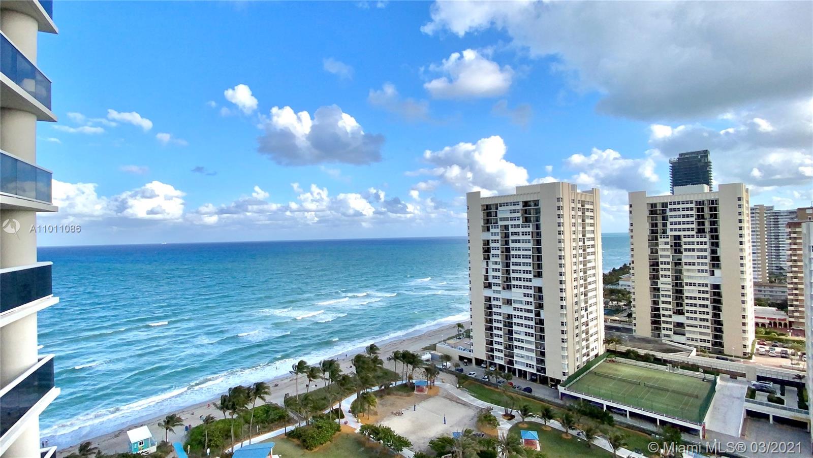 Gorgeous fully furnished corner unit features an open-floor plan with breathtaking ocean and city views is located in resort style building steps away from the ocean! Wraparound balcony and private balcony in the master bedroom. Large open kitchen with granite countertops, NEW dishwasher and washer/dryer in the unit. TWO ASSIGNED PARKING SPACE! And storage unit on the 5th floor. The building offers 5 STAR AMENITIES: Beach Service, several heated pools with oceanview, JACUZZI, SPA- center, complimentary Beach Service with Pool side Cafe, 2 story GYM with free classes ,yoga, Pilates etc. Close to Restaurants, shopping, Starbucks, Pharmacy, Walmart, Publix, Gulfstream Park and more. GREATE FOR INVESTORS!