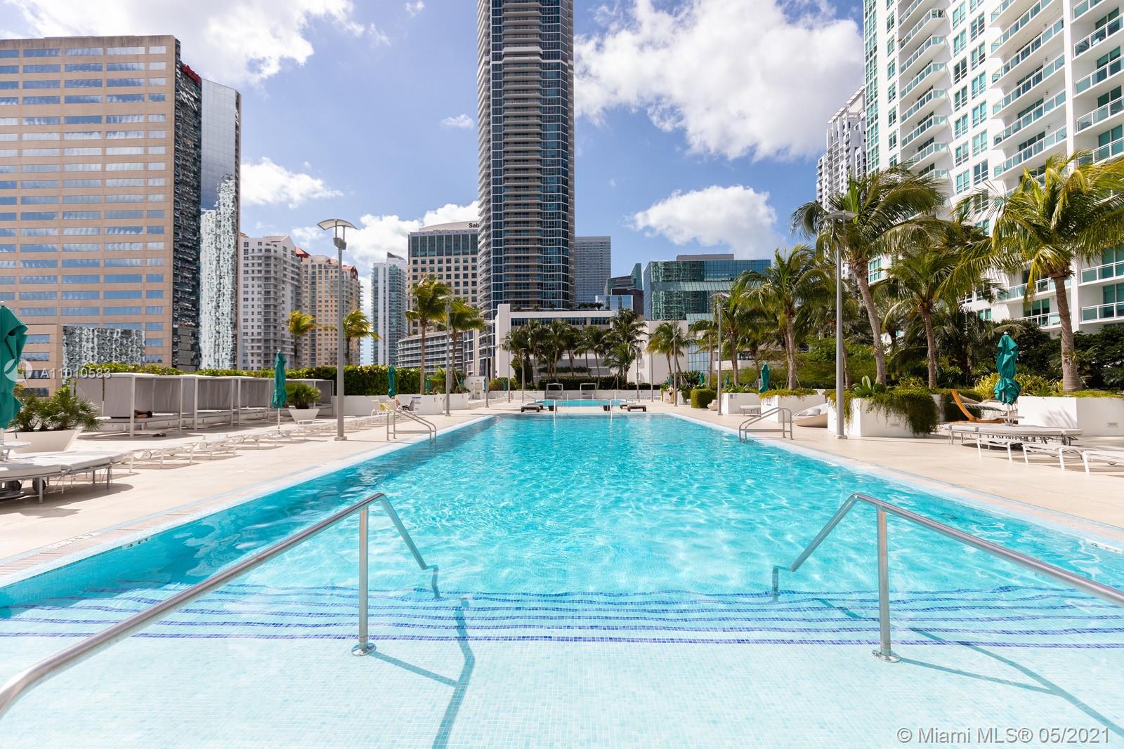 Beautiful large 1 bedroom corner unit with high ceilings. Great city and partial bay view. One assigned car parking space in third floor. Fully remodeled custom closet. Washer and dryer in unit. Premium appliance package. Currently owner occupied. ThePlaza at Brickell is centrally located to great restaurant. Two pools, newly remodeled gym, spa with steam room and awesome amenities including movie theater, community room, storage space for rent.