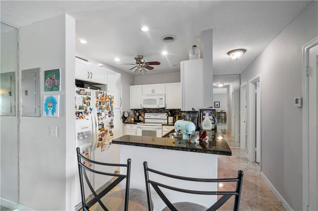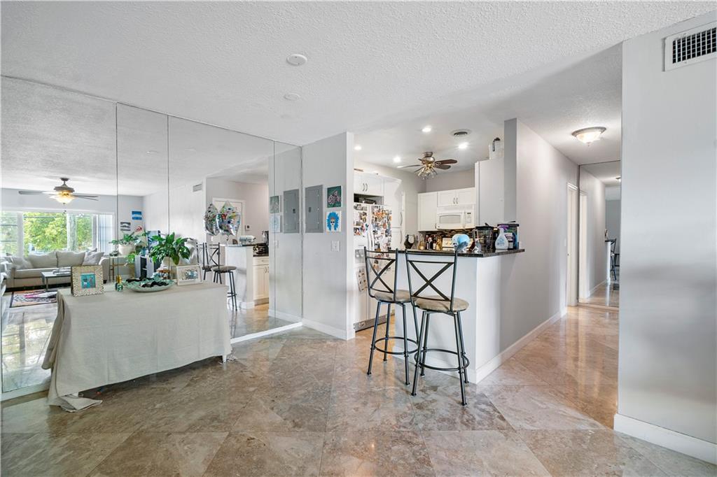 Quaint and Modern two (2) bedroom, two (2) bathroom Imperial Point Gardens condominium in highly desired quiet community. At 1,100 square feet, this second floor home is one of the largest and nicest 2 bedrooms available, close to the pool, clubroom and billiard room. It is in excellent condition with fully remodeled kitchen and both full bathrooms. Home features stone tile throughout and carpet in both bedrooms. Kitchen features include a dishwasher, disposal, built in Microwave, electric range, pull out shelving in pantry, and refrigerator. The home has ceiling fans in every room. Your Parking space #58 is located right outside. This home is near everything Fort Lauderdale has to offer; walking distance to restuarants, shopping, and close to the beach, etc.