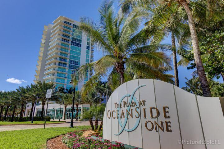 Welcome to the Plaza at Oceanside! Your Luxury Florida Lifestyle with Gorgeous Intracoastal/Marina/Ocean/City and Sunset Views ! This immaculate 16th floor southwest corner 2 bdrm/2 bath split design sky residence features an open floor plan and floor to ceiling impact glass sliders from each room to the huge terrace which perfectly captures the beautiful panoramic view. Kitchen features Poggenpohl cabinetry, granite countertops and high end Viking s.s. appliances. The expansive master suite opens to the terrace, has two large walk-in closets and a luxurious bathroom with Jacuzzi tub, separate shower and two-sink vanity. The Plaza at Oceanside has world-class amenities: a huge infinity-edge resort pool, 2 tennis courts, summer kitchen, ocean-view world-class fitness center, and much more.