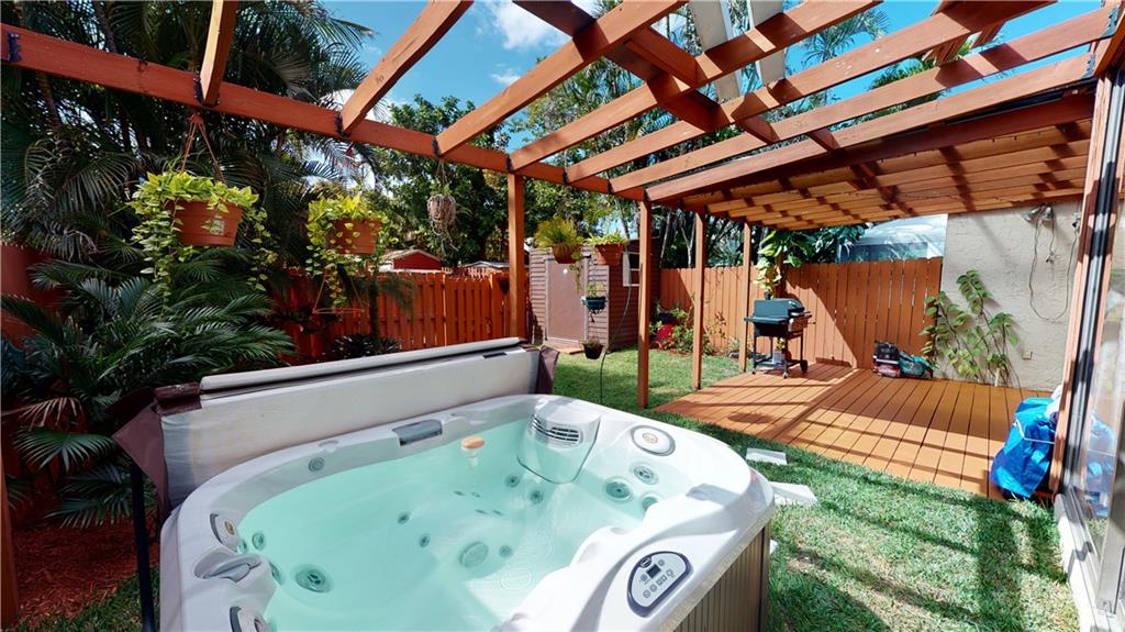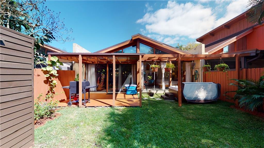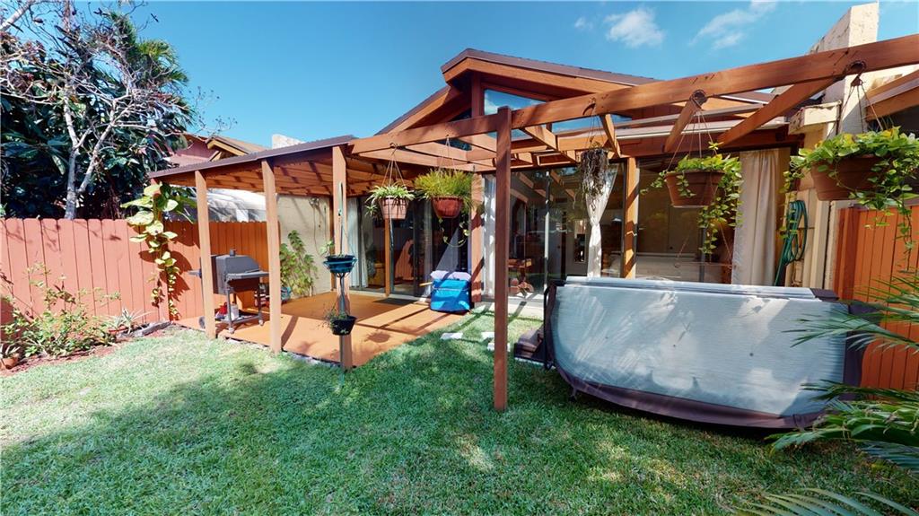 Come see this rarely available home at The Lofts of Palm Aire! This 2 Bedroom 2 bath loft home is as close to a single family as you can get with it's own private fenced yard, fruit trees, hot tub, shed and covered patio. Spacious open floor plan with vaulted pine wood ceilings. UPDATED kitchen with modern custom wood cabinets, stainless steel appliances & granite counters. Second bedroom features a loft area that can be used as another room or for storage. Large Master bedroom with walk-in closet and en suite bathroom. Freshly painted, NEW A/C 2020 & updated flooring. LOW HOA includes community pool, gym, tennis & hand ball court. Centrally located close to shopping, restaurants & major highways for easy access.