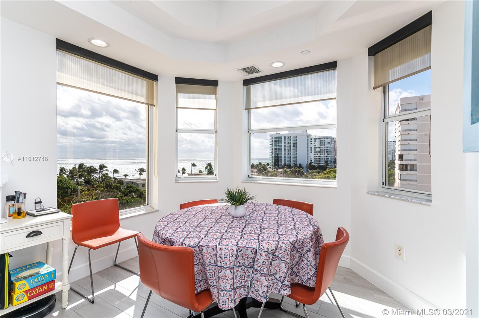 Luxurious building with semi-private elevator that leads you to a beautiful and recently renovated 3 bedroom apartment with modern porcelain flooring throughout, new white kitchen cabinets, and quartz countertops offering open space towards dining and living room area. Stainless steel appliances including wine cooler. Panoramic and gorgeous ocean views from kitchen dining, formal dining, living room, master bedroom, and of course from the 220 sq ft balcony. High ceilings with double trays and LED lighting. Private beach access and club across the street. Pool with barbecue area next to building docks. Low maintenance of $632 monthly which includes reserves. Very well-managed and maintained building with solid financial and reserves. All windows are high impact resistant for hurricane.