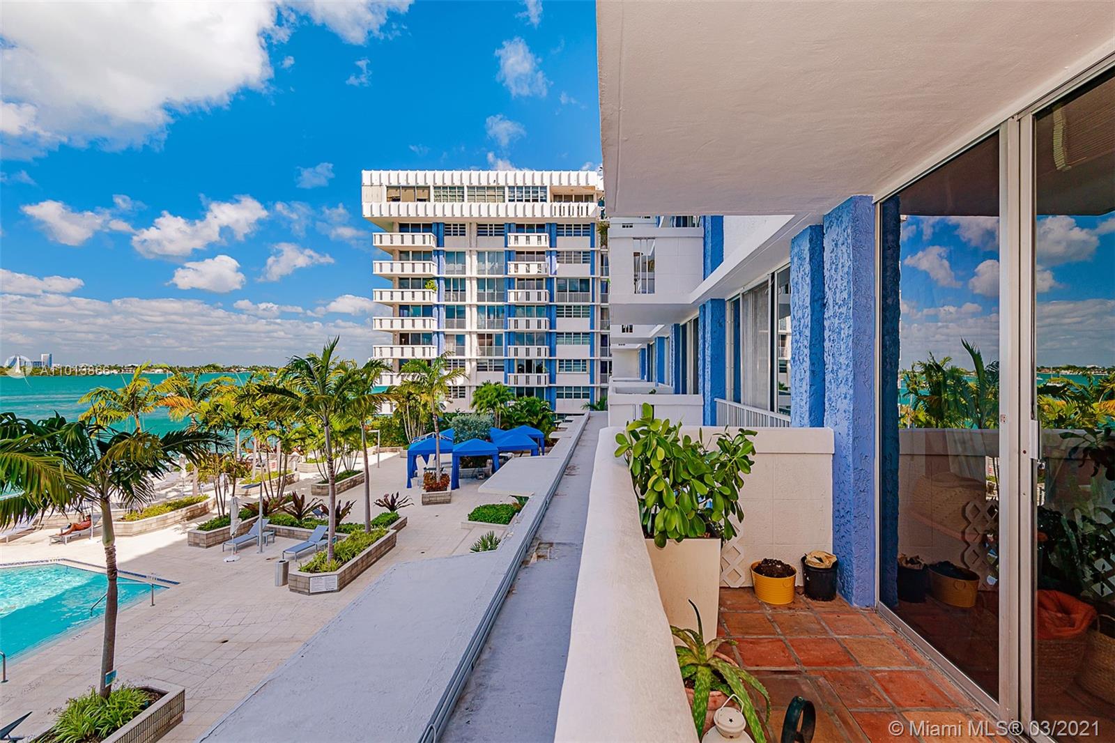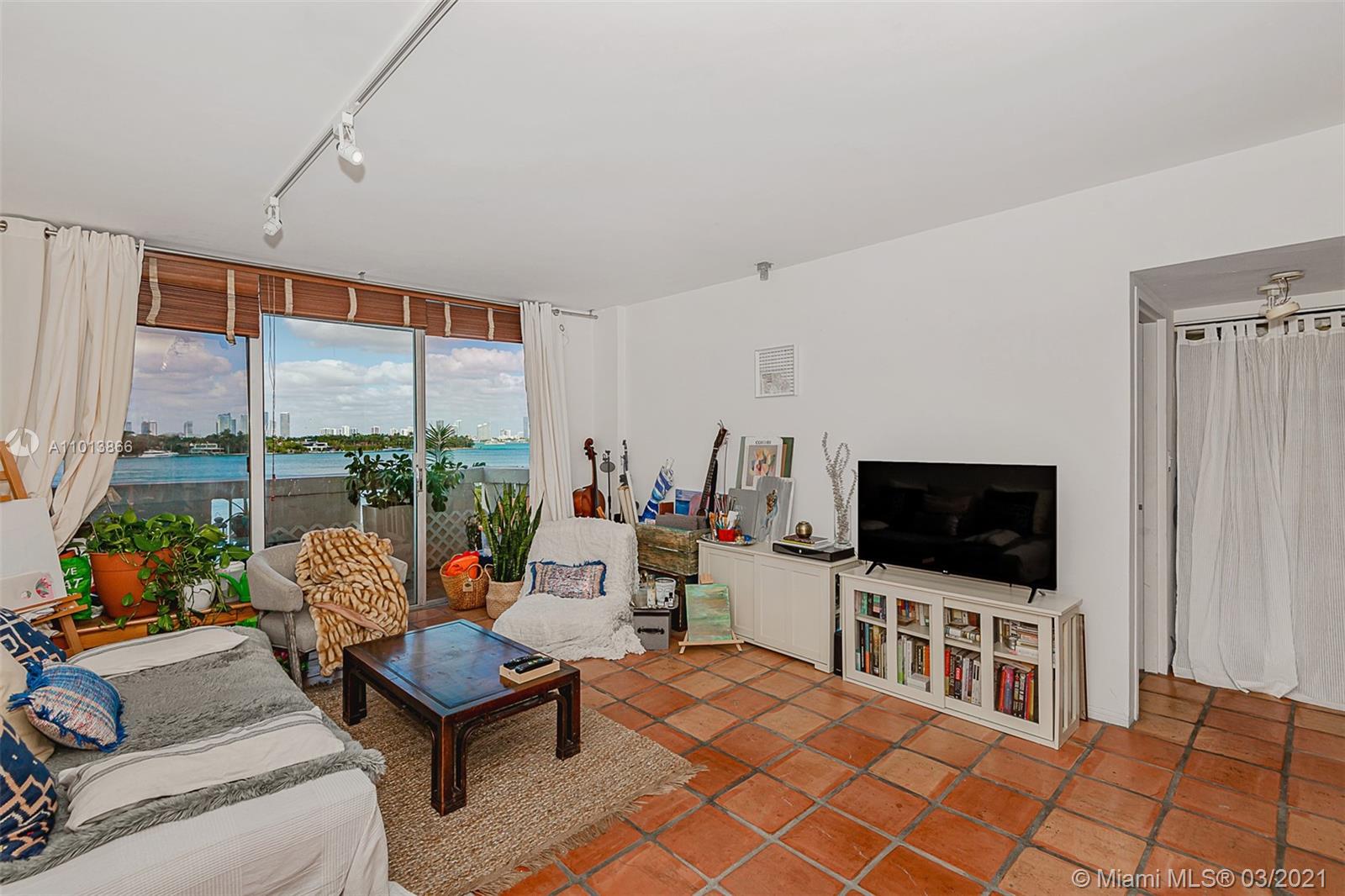 Fantastic direct bay views from the living room, balcony, & bedroom also of the pool & jacuzzi directly below the unit. The updated kitchen has granite counter tops & stainless steel appliances. There is a all-in-one washer/dryer unit in the kitchen that saves space. Tile floors throughout. It has 1 assigned parking space & the building offers guest parking. 1 pet under 26 pounds is allowed. Building amenities include a fitness center, recreation room, barbecue area, 24 hour front desk, and sitting areas in the waterfront pool patio area. Card entry or front desk access to the living areas for security. There are boat docks available for rent through the building association. Coming home to your condo is like being on vacation with all these amenities.
