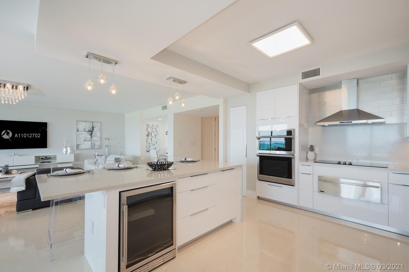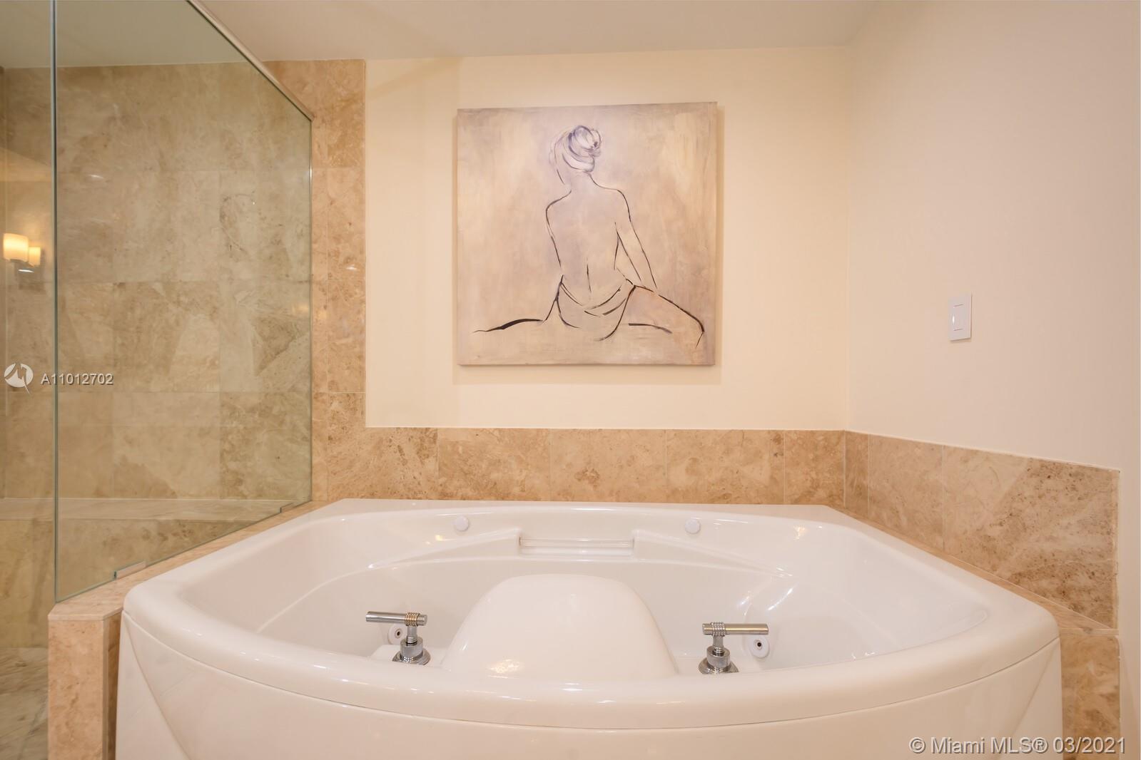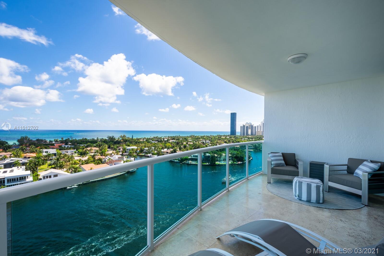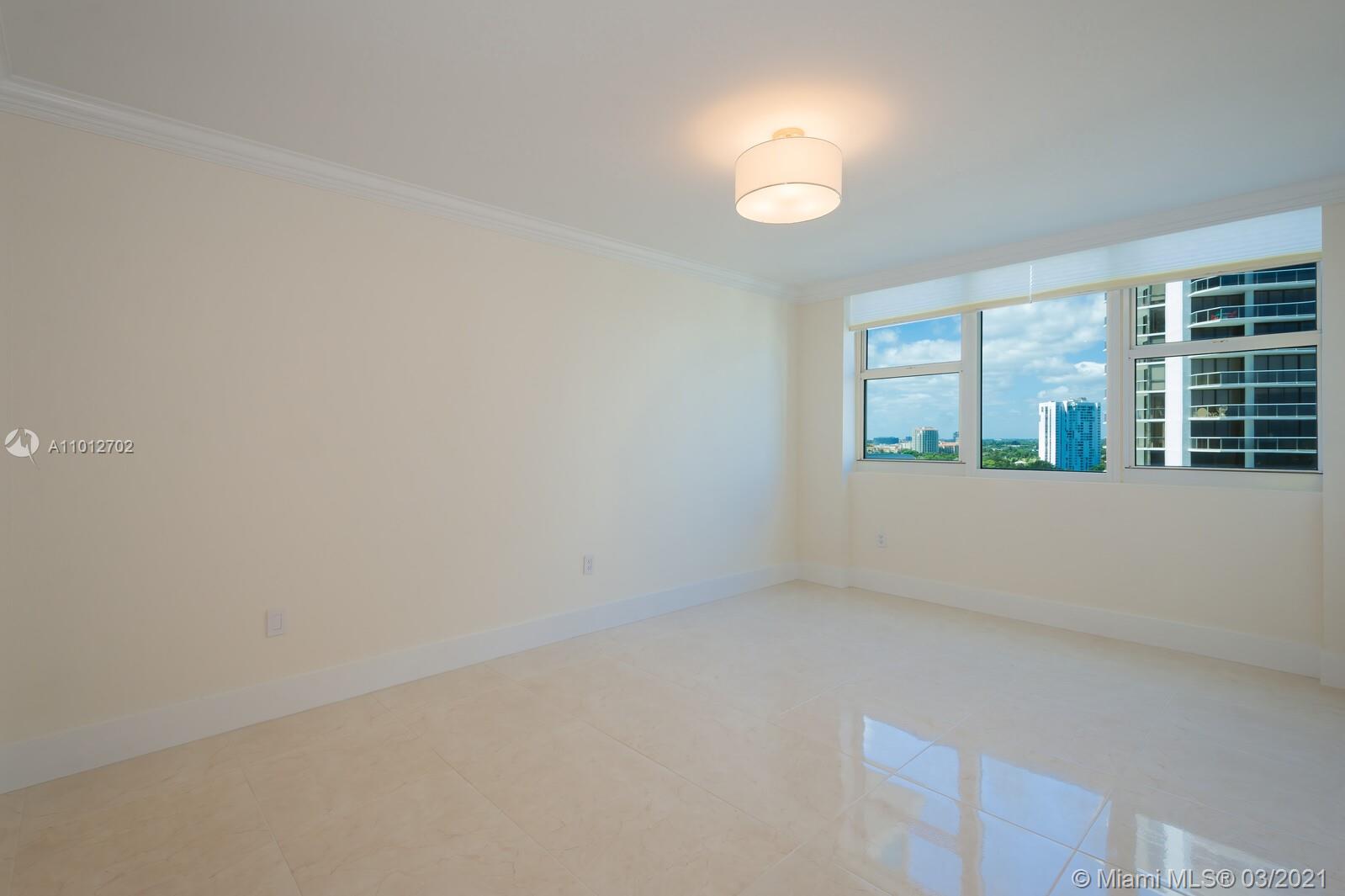Have your office in an apartment with best direct East views to the Ocean, Intracoastal & Golden Beach. Views to the city and golf course, also. Located in the heart of Aventura. Residence has three bedrooms' plus Office, 3 bathrooms and a half bath. Modern open kitchen, dinning room and living room. Porcelain tile throughout, floor to ceiling impact windows, living room with remote control blinds. Condo with full amenities, two pools,4 tennis courts, restaurant, 2 gyms, racquet ball courts, yoga room and SPA.