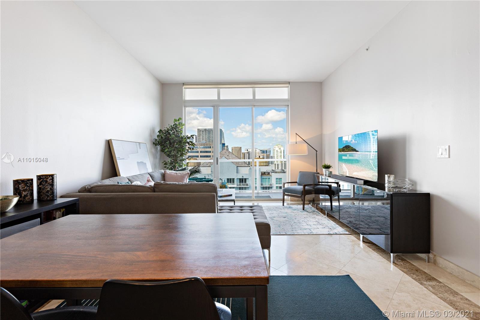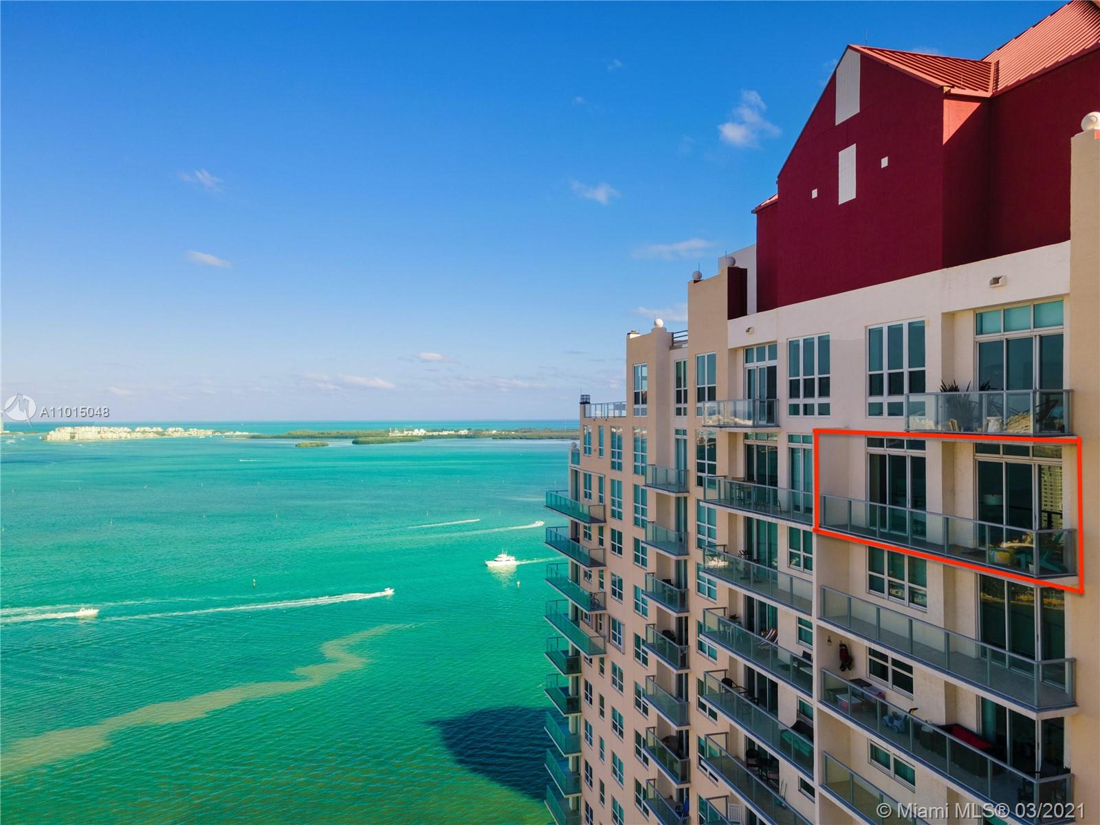 Gorgeous 1BR 1BTH penthouse level unit with 10ft high ceilings. Amazing water views of the ocean and Biscayne Bay. 730 living area sq ft. Full kitchen remodel (2017) including new cabinets, quartz countertops/backsplash, stainless steel Kenmore appliances (fridge, stove/oven, dishwasher, microwave) as well as GE stacked washer/dryer. 18” marble tiles throughout. Custom cabinetry in bedroom/front hall closet. Includes TWO (2) parking spaces (1 assigned, 2nd is valet at no charge). Excellent amenities including fitness center with water views, pool/Jacuzzi hot tub, tennis/racquetball courts, club room, on-site convenience store and restaurant. Additionally, valet/concierge services are offered. Recent building improvements include glass railings on the balconies, lobby and hallway updates.