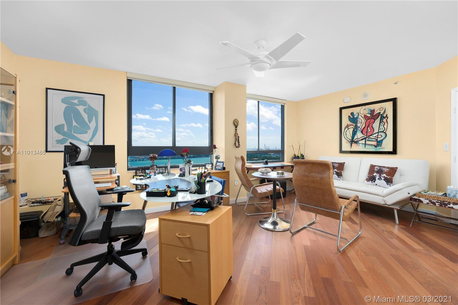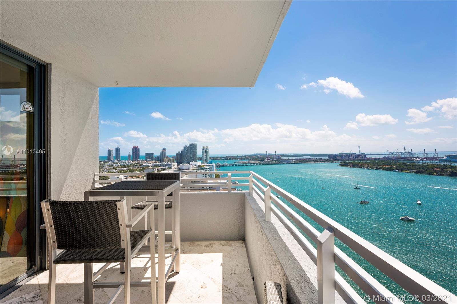 Breathtaking views of the bay, city, and ocean from every room! A renovated 2 Bed/2 Bath corner unit at The Waverly at South Beach featuring Brazilian cherry wood floors throughout the main living areas, travertine marble in the bathrooms and kitchen, a laundry room w/ full-size washer & dryer, stainless steel kitchen appliances, granite countertops, and a spacious balcony from which to watch daily sunsets over the Downtown Miami skyline & Biscayne Bay. Tons of natural sunlight! Includes 2 parking spaces (1 assigned + 1 valet). Building amenities include a fully-equipped fitness center, sand volleyball court, party room, bayfront pool, hot tub, business center, convenience store, tennis court, BBQ, 24-hour valet, and more. Whole Foods, Lincoln Road Shops, and beach within walking distance.