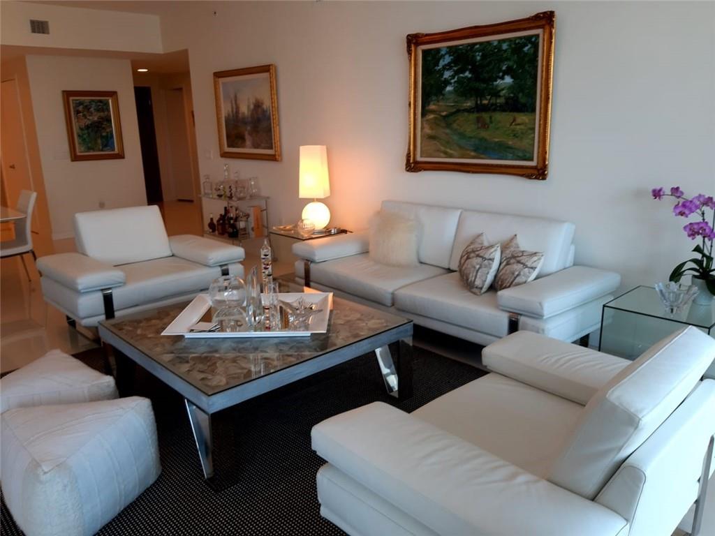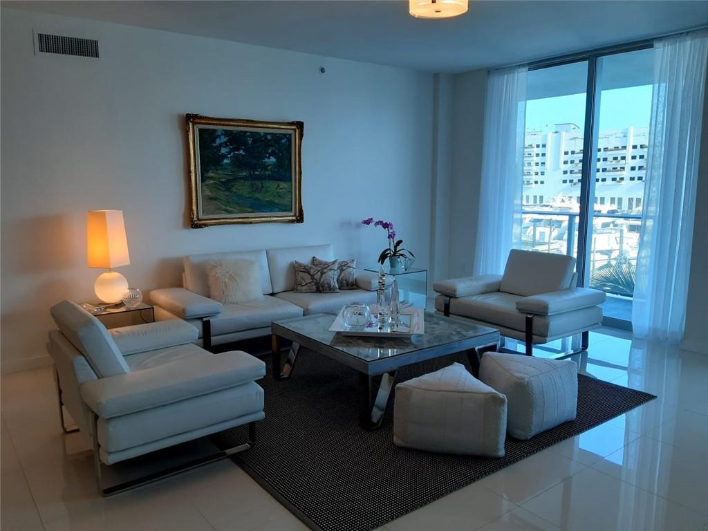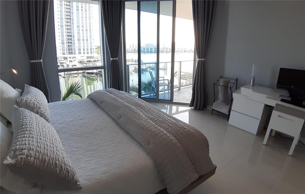 TO SHOW PLEASE MAKE AN ONLINE SHOWING REQUEST. Designer furnished waterfront condo (the sellers state they paid $50k for furniture). Please note the unit is leased until the end of the year. The least expensive condo unit in Marina Palms. Fantastic waterfront apartment with direct ocean access and water views and direct walkthrough access to connected garage (no elevator needed). 24 hours showing notice required.