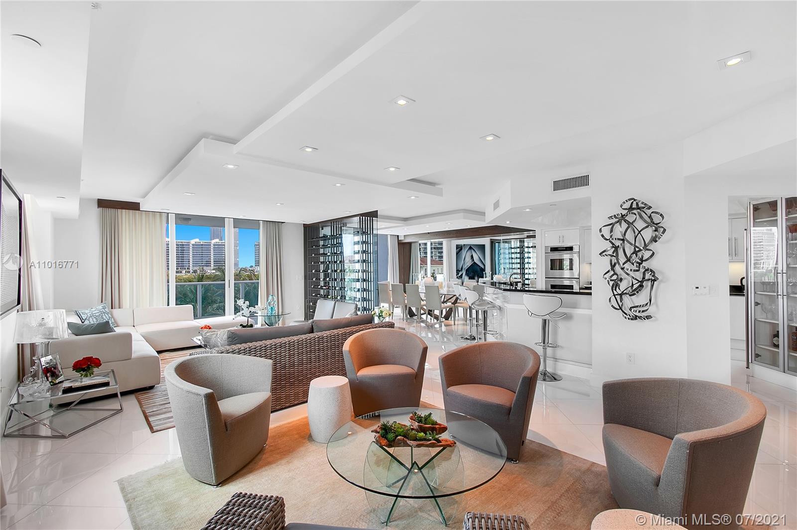 The Crown Jewel of Peninsula! This Residence is Exquisitely Custom Done and Completely Renovated with No Expense Spared - Interior by Anima Domus! Amazing Water Views! Light, Contemporary, and Eye Popping! Open State of the Art Kitchen with Island featuring Pull Out Table, A Glass Enclosed Wine Wall, Glass Floors, All Custom Italian Doors, Custom Lighting. Large 3533 SF with 4 bedrooms/ 4.5 bathrooms. Mastersuite Has Private Terrace! Window in Master Bathroom! Show This One And Your Clients Will Fall In Love - A PERFECT 10! Sold furnished.