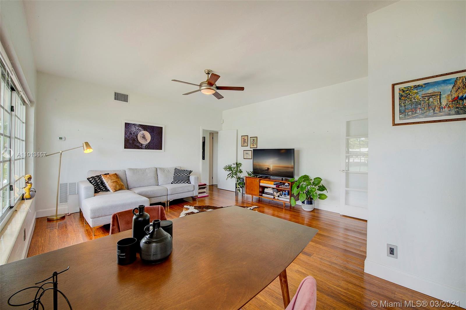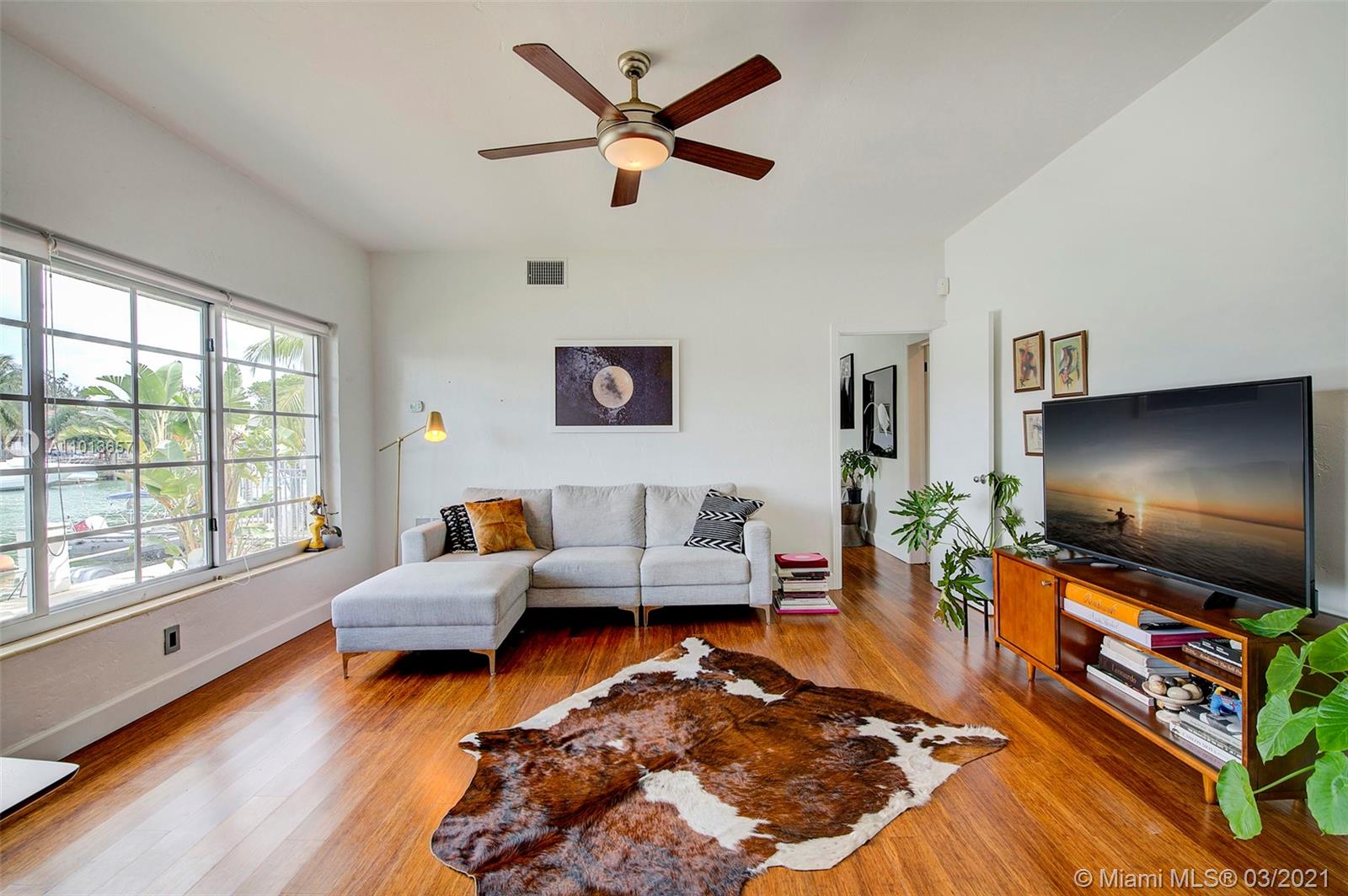 The BEST unit in a charming Art Deco building in Miami Beach's exclusive Normandy Isle. This waterfront garden apartment is a hidden gem. The boho lady has been tastefully renovated with a new kitchen and bathroom with stone mosaic walls and hurricane impact windows. Enjoy expansive water views in this peaceful and sunny home. Off the deck in front of your door, you can launch your kayak and the Bay is right around the corner. Normandy Golf is within a short walk where you can enjoy the clubhouse, outdoor gym and waterfront tennis courts. The home has attractive wood floors, wooden kitchen cabinets and modern gray quartz countertop. There are plenty of storage closets. The living room, dining area, kitchen and bedroom, all offer direct water views. I warn you, this is love at first sight!