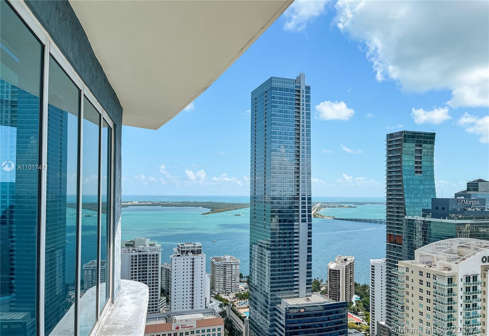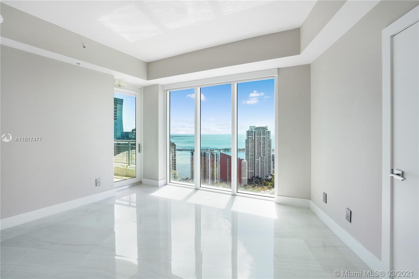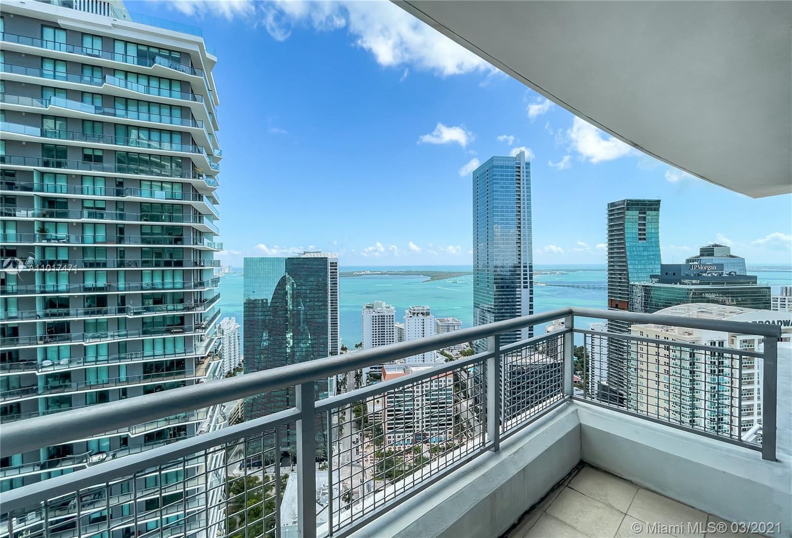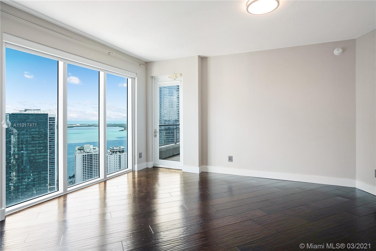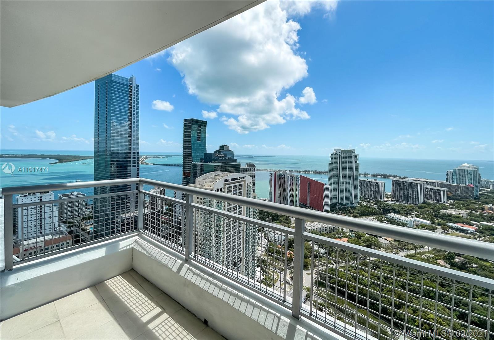This stunning and visually dramatic 2 story residence at Infinity at Brickell is a one of a kind unit. Floating 42 floors up on the south east corner with expansive views of the Bay/ Ocean and the city. This unit will wow you from the very entrance with the double height ceilings and floor to ceiling glass windows that make you feel like you are in the clouds. Recently renovated and Inspired by Modern Italian design. Features include a custom floating staircase illuminated by LED lights, textured surfaces, wallpaper, entire marble slab backsplash in kitchen, and electronic shades. Building has resort style amenities and is extremely well located. Enjoy walking to everything Brickell has to offer. Easy to show call LA.