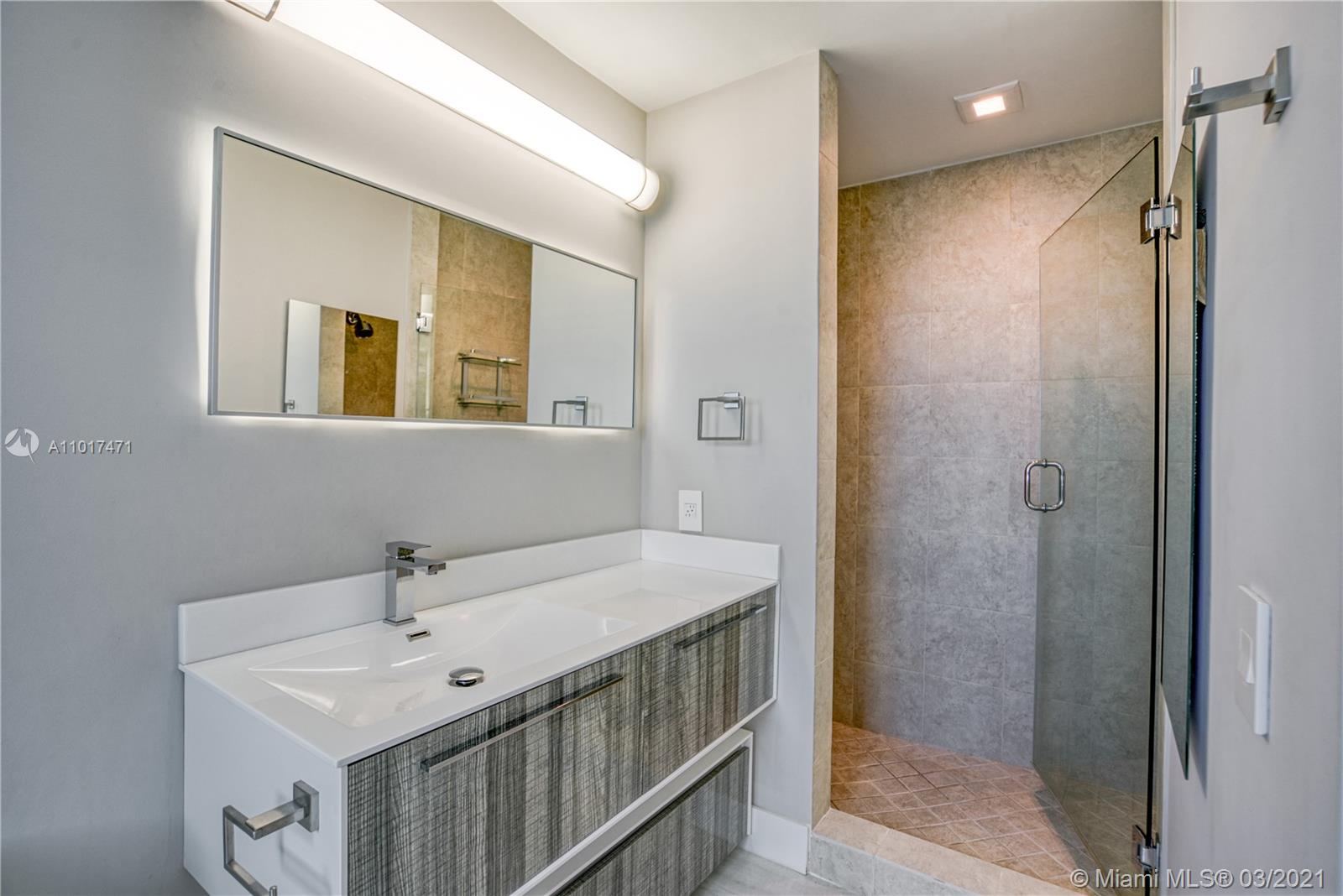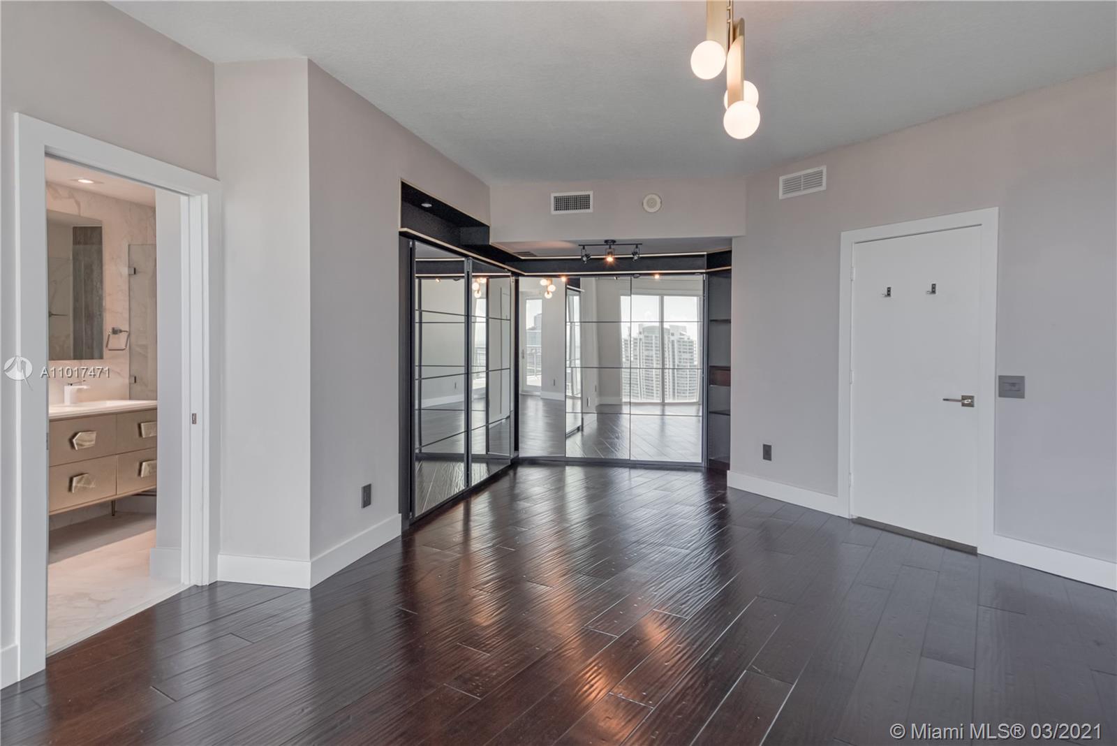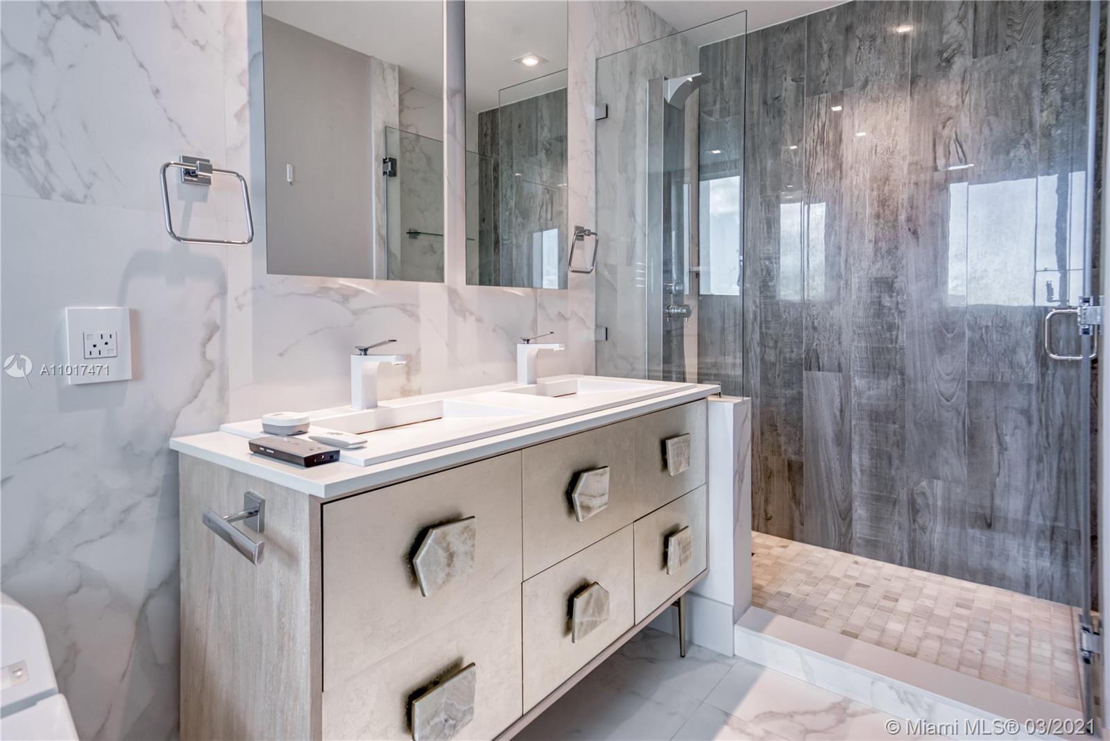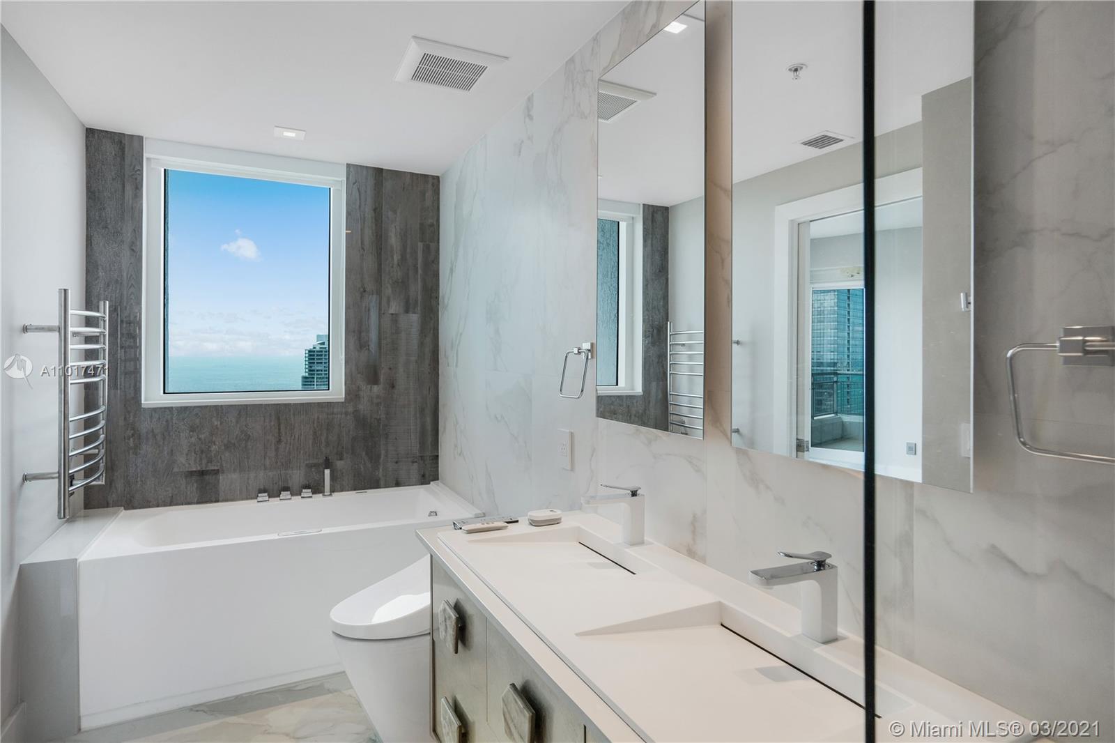This stunning and visually dramatic 2 story residence at Infinity at Brickell is a one of a kind unit. Floating 42 floors up on the south east corner with expansive views of the Bay/ Ocean and the city. This unit will wow you from the very entrance with the double height ceilings and floor to ceiling glass windows that make you feel like you are in the clouds. Recently renovated and Inspired by Modern Italian design. Features include a custom floating staircase illuminated by LED lights, textured surfaces, wallpaper, entire marble slab backsplash in kitchen, and electronic shades. Building has resort style amenities and is extremely well located. Enjoy walking to everything Brickell has to offer. Easy to show call LA.