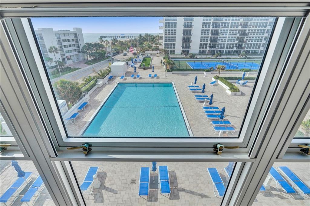 Bright Southeast corner unit with views for miles!!! 2 Assigned garage spots! Just a short walk from all the new restaurants, shops, and pier in the new and improved beach area of Pompano Beach. Amazing Views down the beach from both bedrooms and kitchen with a direct ocean view from the living room. Brand new stainless steel appliances in an updated kitchen with granite counters. Floor to ceiling impact windows in the bedrooms! Building has great amenities including two pools, tennis court, and gym and this condo comes with TWO assigned parking spaces! Come make this your new home - with furniture included!