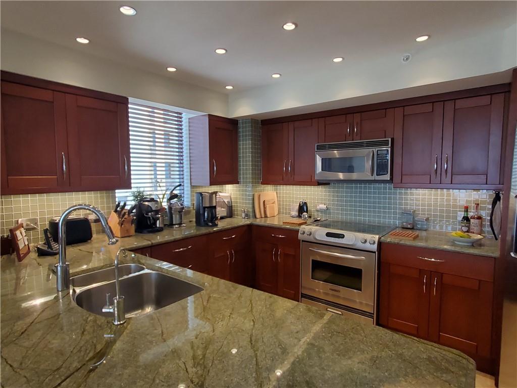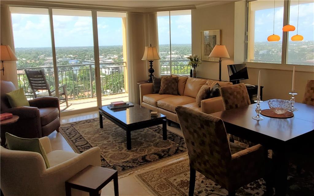 Vue Resident & Beach Club 2/2 Professional finishes. No detail was over looked. Corner wraparound balcony with Intercoastal and Ocean views. Marble floors throughout and Crown molding, open kitchen with Brazilian Rain Forest granite countertops, stainless steel appliances, washer/dryer. 2 pools - one WITH DIRECT ACCESS TO BEACH from the Vue's private beach club! Cable & Internet included, 2 parking spaces and 2 pet (up to 50lbs) Full service BLDG. 24hr Valet, front desk attendant.