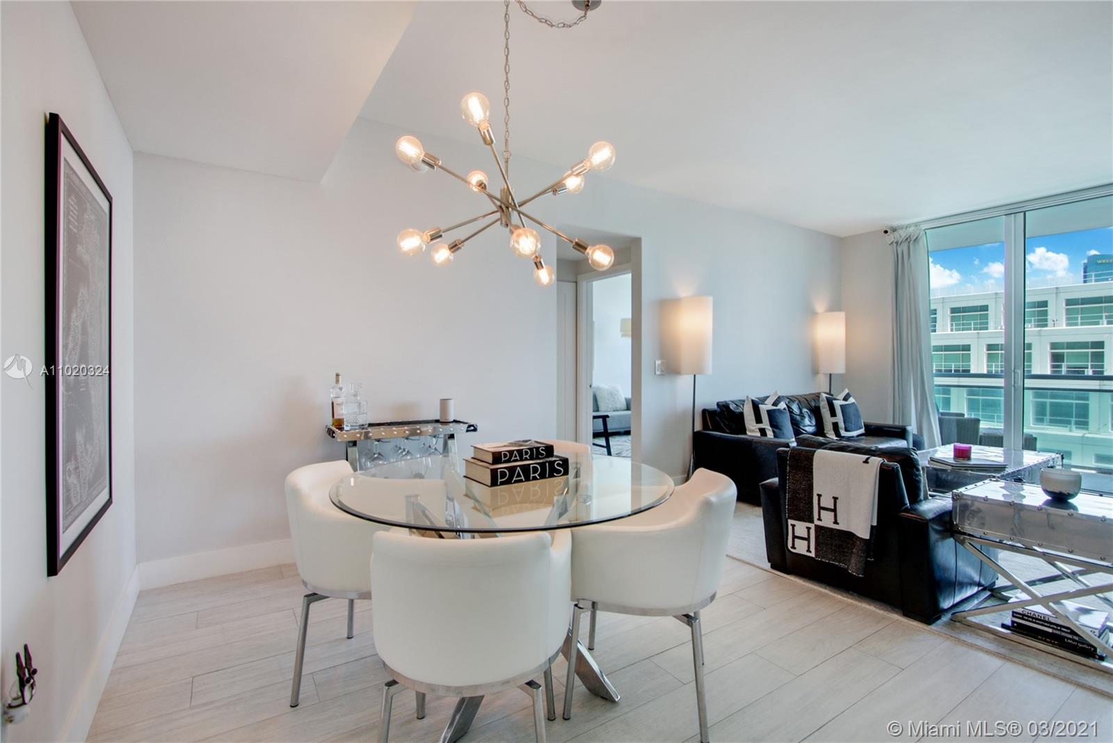 Stunning & exceptionally updated 2/2 (“04” line) w/breathtaking city skyline & water views. Step into this condo & prepare to be “wowed”! New white kitchen w/waterfall quartz countertops & top-of-the-line stainless steel Kitchen Aid appliances. New “wood” floor tiles. New light fixtures. New interior wood doors & trim. Master bath w/rain-shower & additional linen closet. All finished closets. Hunter Douglas shades. New Rheem AC. New Washer/Dryer. Balcony overlooks amazing water views. Centralize location allows you to walk everywhere. Reasonable monthly maintenance fee. Tastefully appointed to make this condo your next home! Truly turn-key! Easy to show!