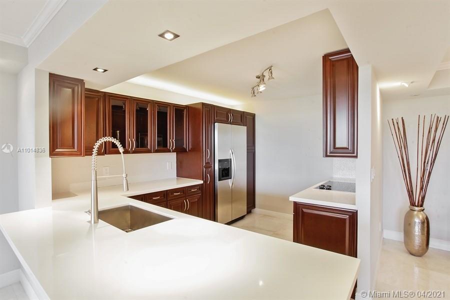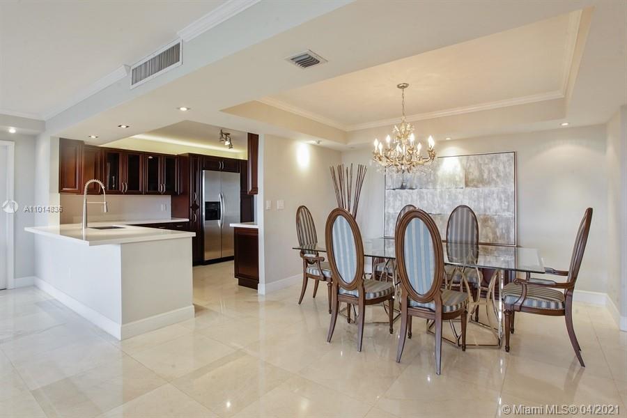 Rarely available 04 line “Split Plan” with 1,882 interior SF and direct bay and lush tropical landscape views! This beautifully updated residence offers 2 bedrooms, 2 bathrooms, an open gourmet kitchen with beautiful dark cabinets, quartz countertops, and stainless-steel appliances. The floors are exquisite French vanilla marble floors. There is beautiful lighting throughout which includes recessed lighting and lighting for artwork. Both bathrooms are remodeled, and the primary bathroom has a large glassed-in shower and crema marfil natural stone floors. Other features include a very spacious primary suite with a large walk-in closet, laundry room with full sized stacked washer and dryer. Live on a guarded 20-acre island with full services and resort style amenities.