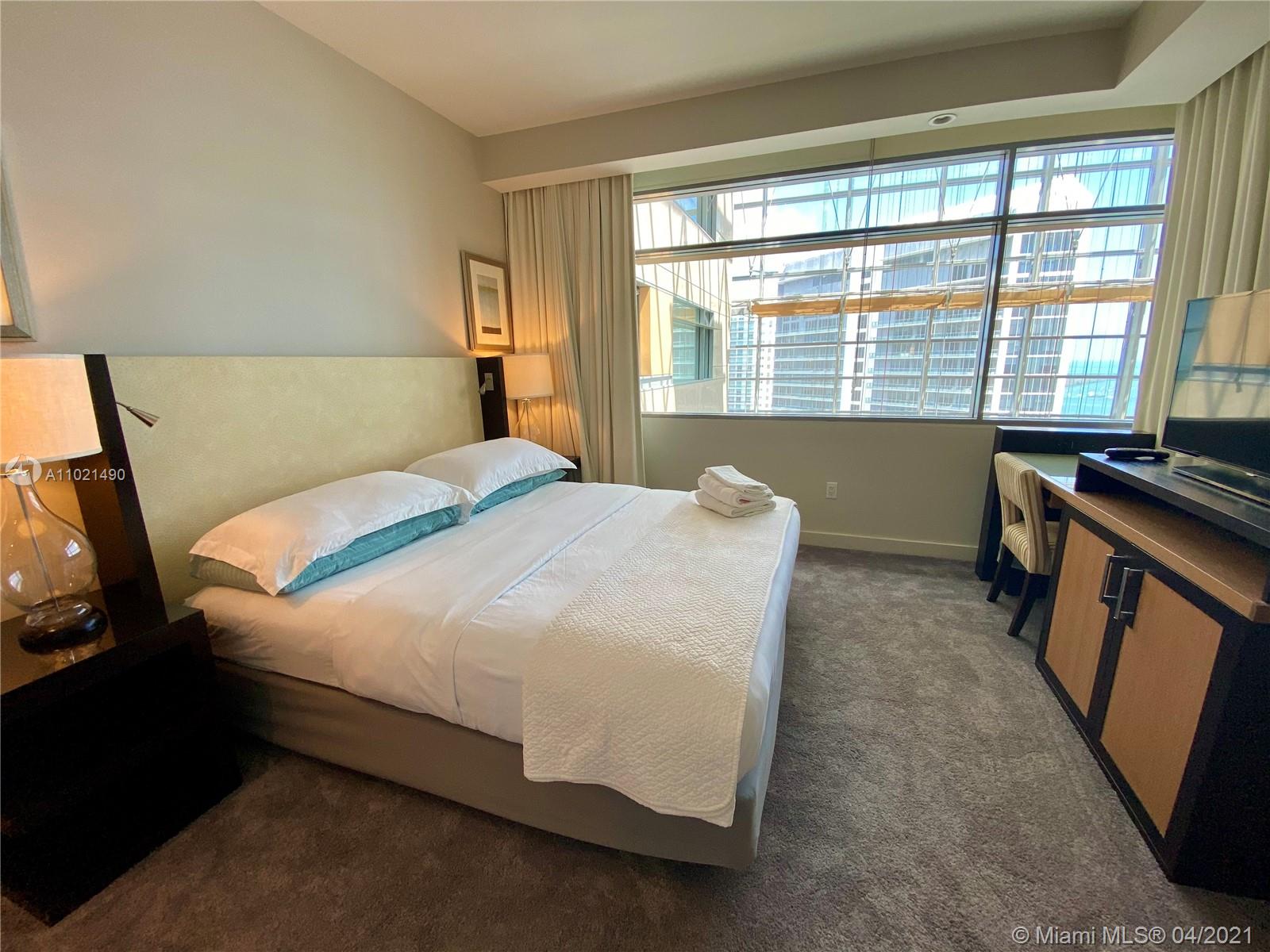 Direct East facing unit with Bay and City views. Hotel/Condo. In the same development as the Conrad Hotel and Brickell Arch tower. Short term rentals permitted. All furniture included in the sale. Currently rented to a company managing Airbnb rentals. You can keep them or we can terminate the lease, no problem. Building has great amenities. In the Heart of Brickell. All hot spots right down stairs and walking distance. Gym, Spa, Pool, Tennis, 24 hour concierge, Restaurants and even Room Service. One of the only Condo Hotels in Brickell that legally permits short term rentals. Perfect for corporation or someone that wishes to generate income while traveling and still have a place in Miami to call home. If interested please request the 3D virtual tour.