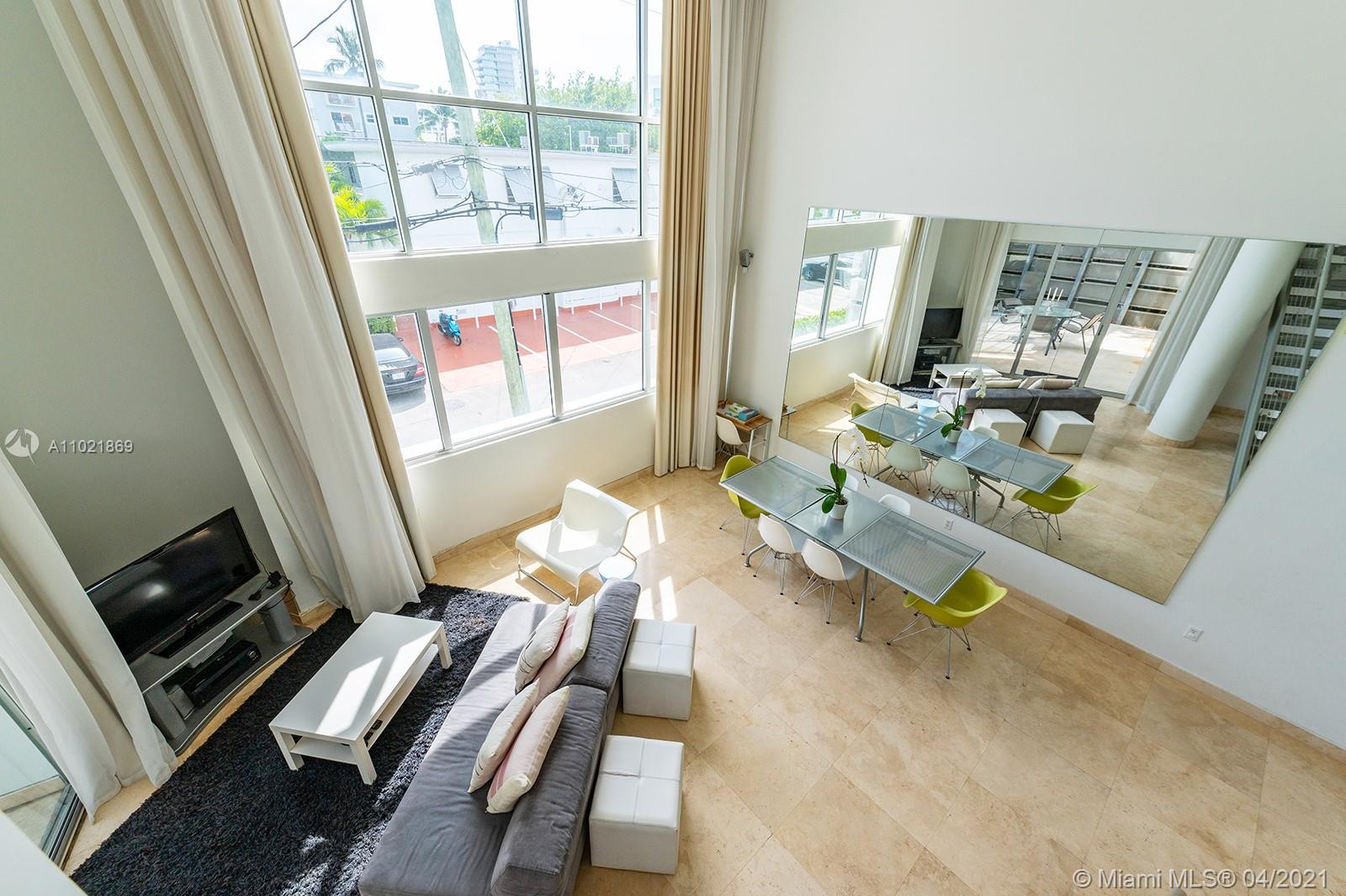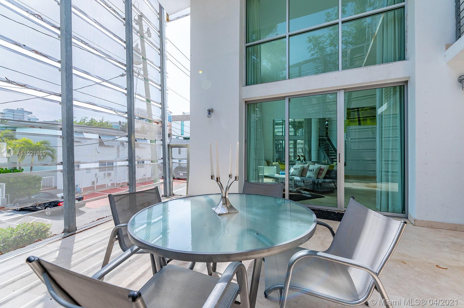 The Ilona—modern town-home living in the best section of SoFi (the best location of South Beach)! Master suite upstairs in this spacious 2 bed 2 bath loft condo. 20’ ceilings with floor to ceiling glass windows, master balcony and huge private patio. Combined indoor-outdoor living unexpected in Sobe. Grill and entertain outside or plenty of space for indoor too. In unit washer/dryer, assigned gated covered parking. Boutique 16-unit building with rooftop lounge (sunrise and sunset views) and pool. Open air lobby-true tropical Florida living. Please give 24 hour notice to show, agent must accompany.